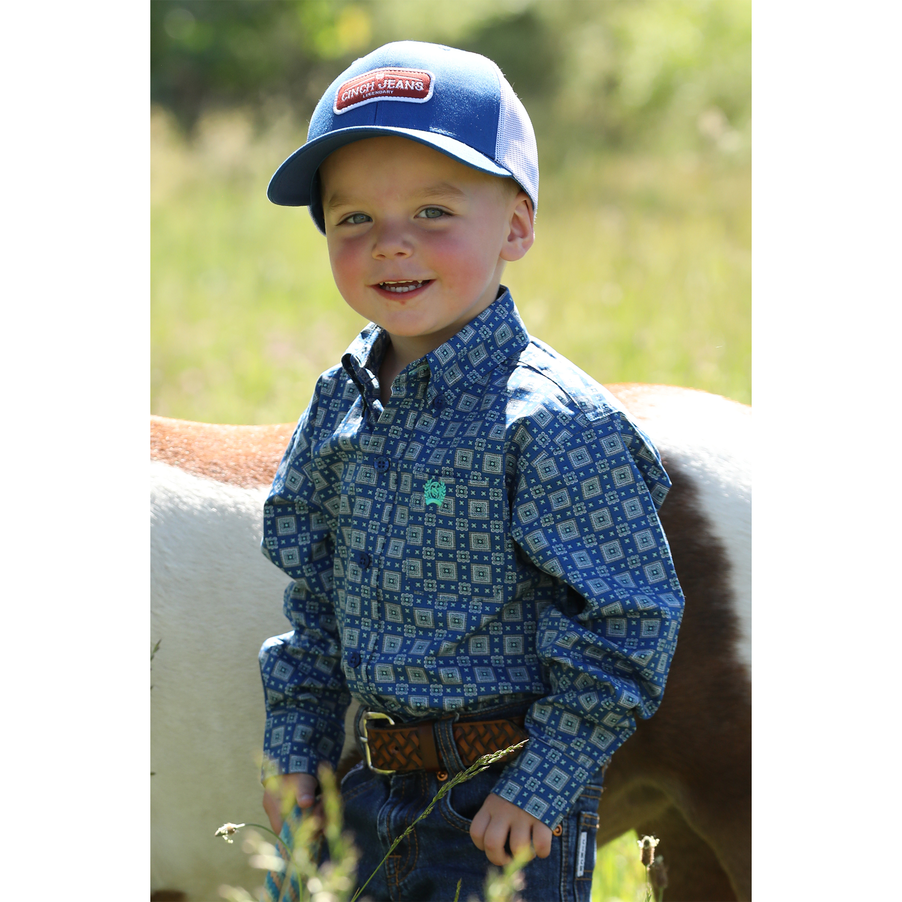 Cinch Boy's Long Sleeve Print Shirt- Royal Blue