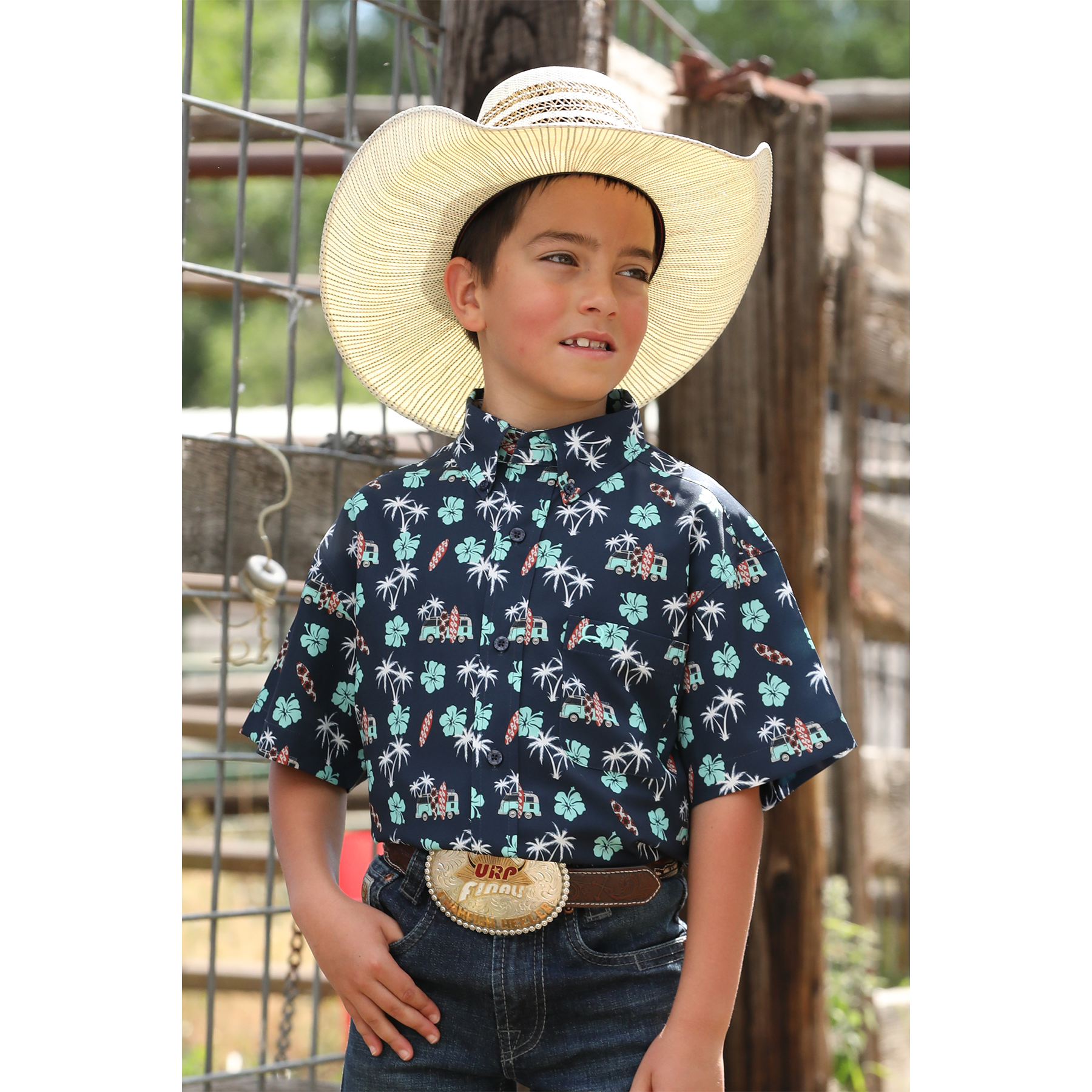 Cinch Boys Short Sleeve Arenaflex Shirt-Navy