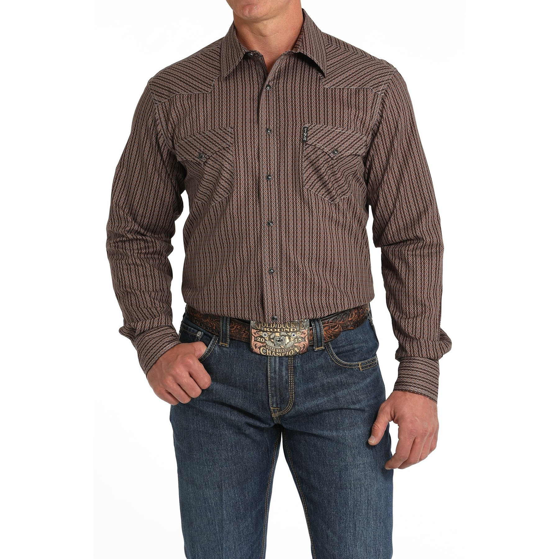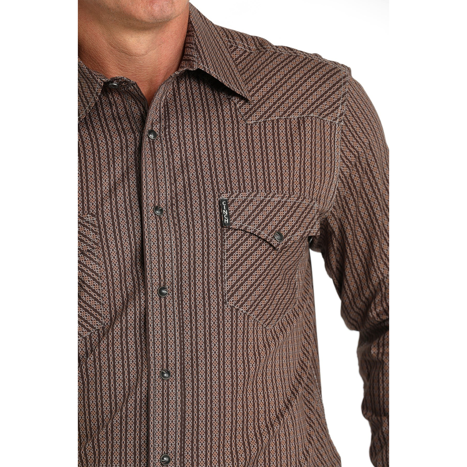 Cinch Classic Fit Long Sleeve Men's Cotton Patterned Shirt - Brown