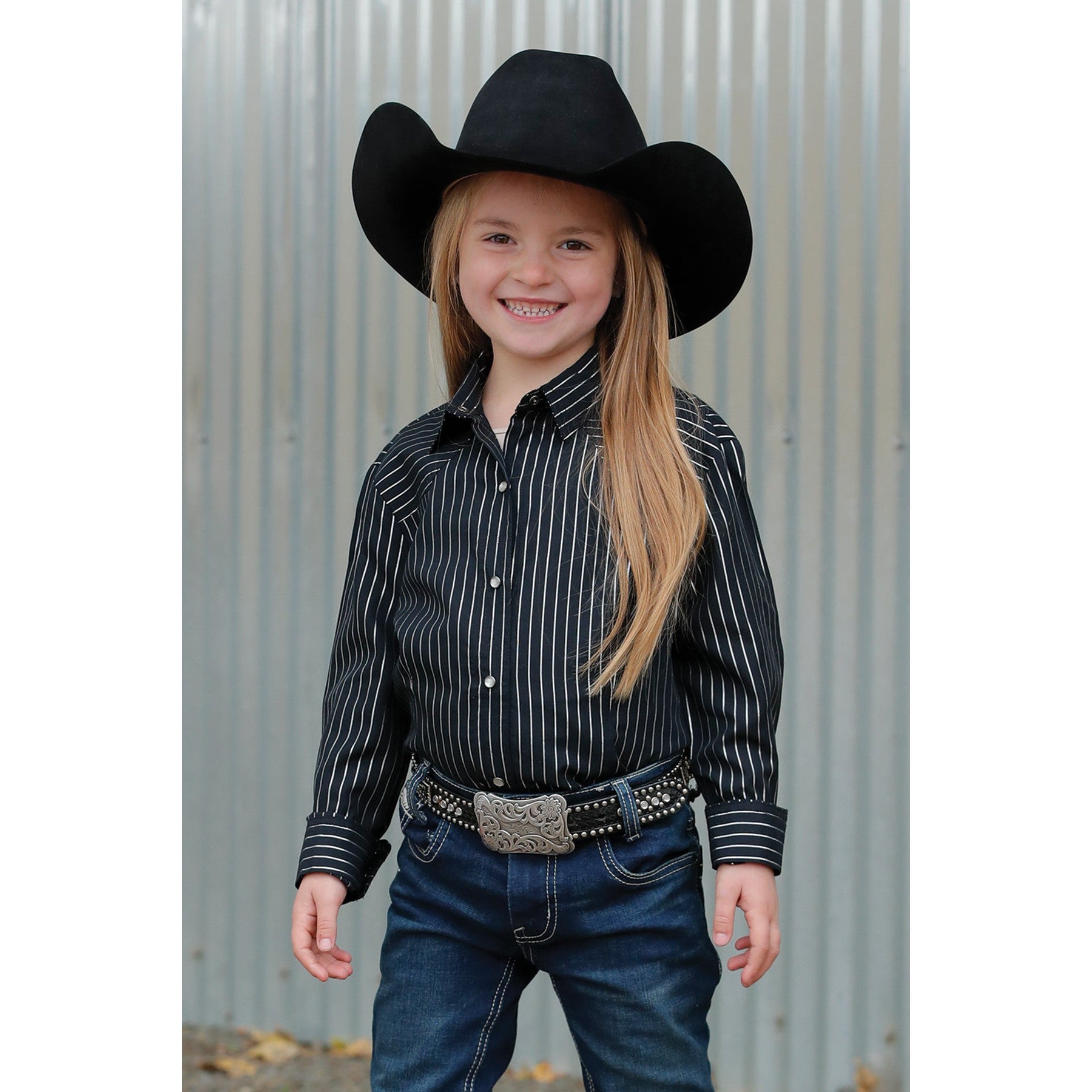 Cinch Girl's Long Sleeve Button-Down Striped Shirt - Black
