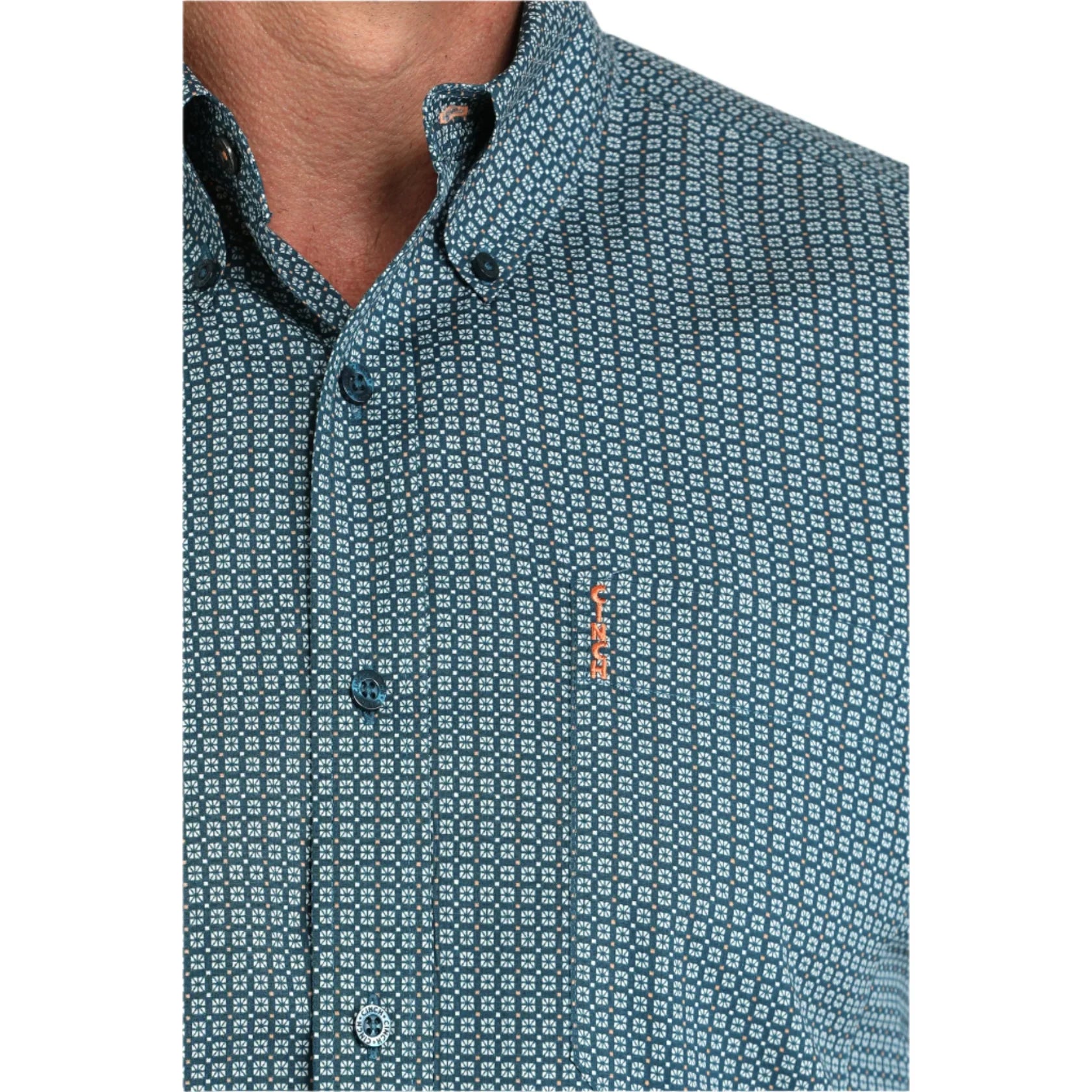 Cinch Men's Long Sleeve Button Down Geo Print Shirt - Teal