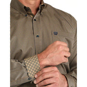 Cinch Men's Long Sleeve Striped Button Down Western Shirt-Brown