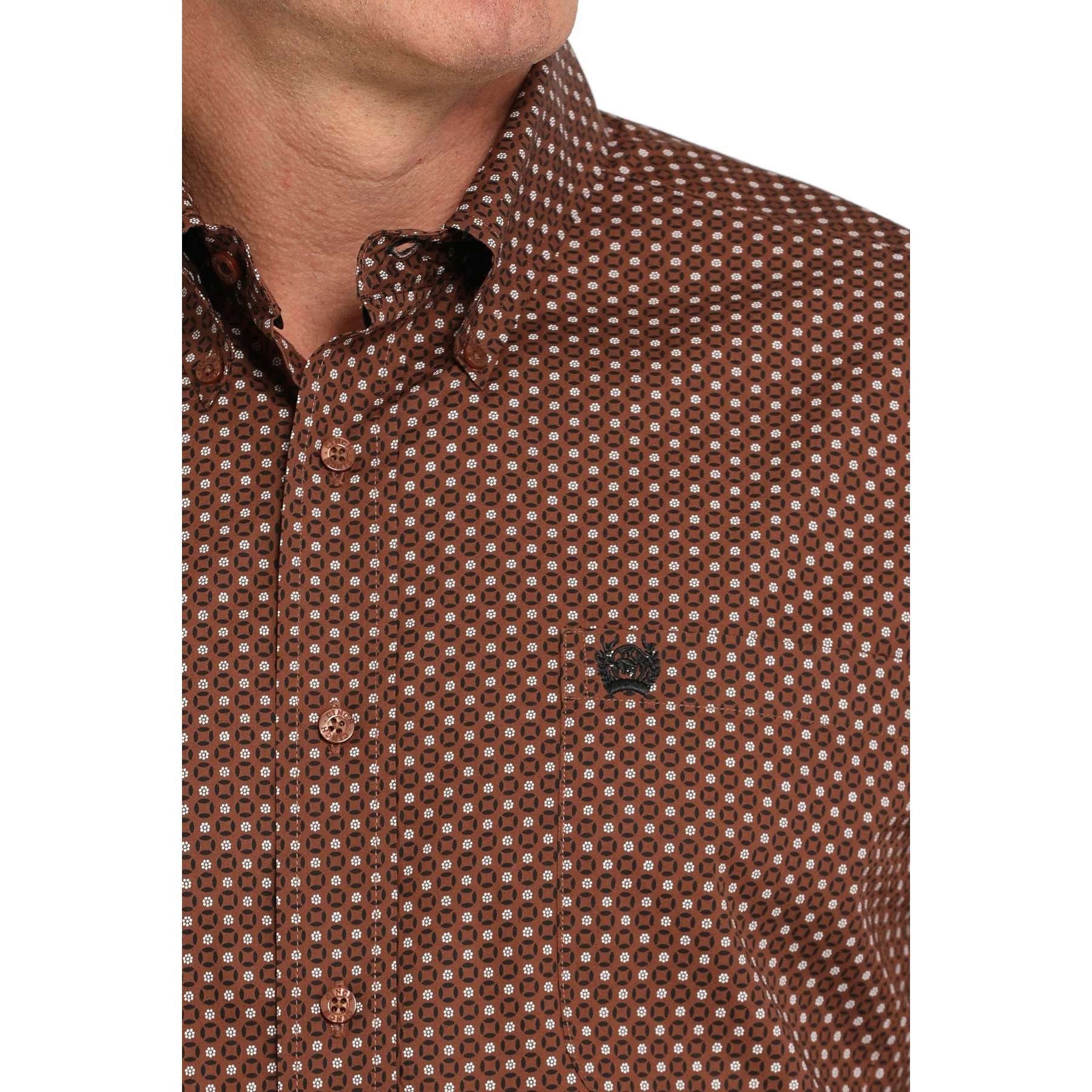 Cinch Men's Long Sleeve Geometric Print Shirt - Brown