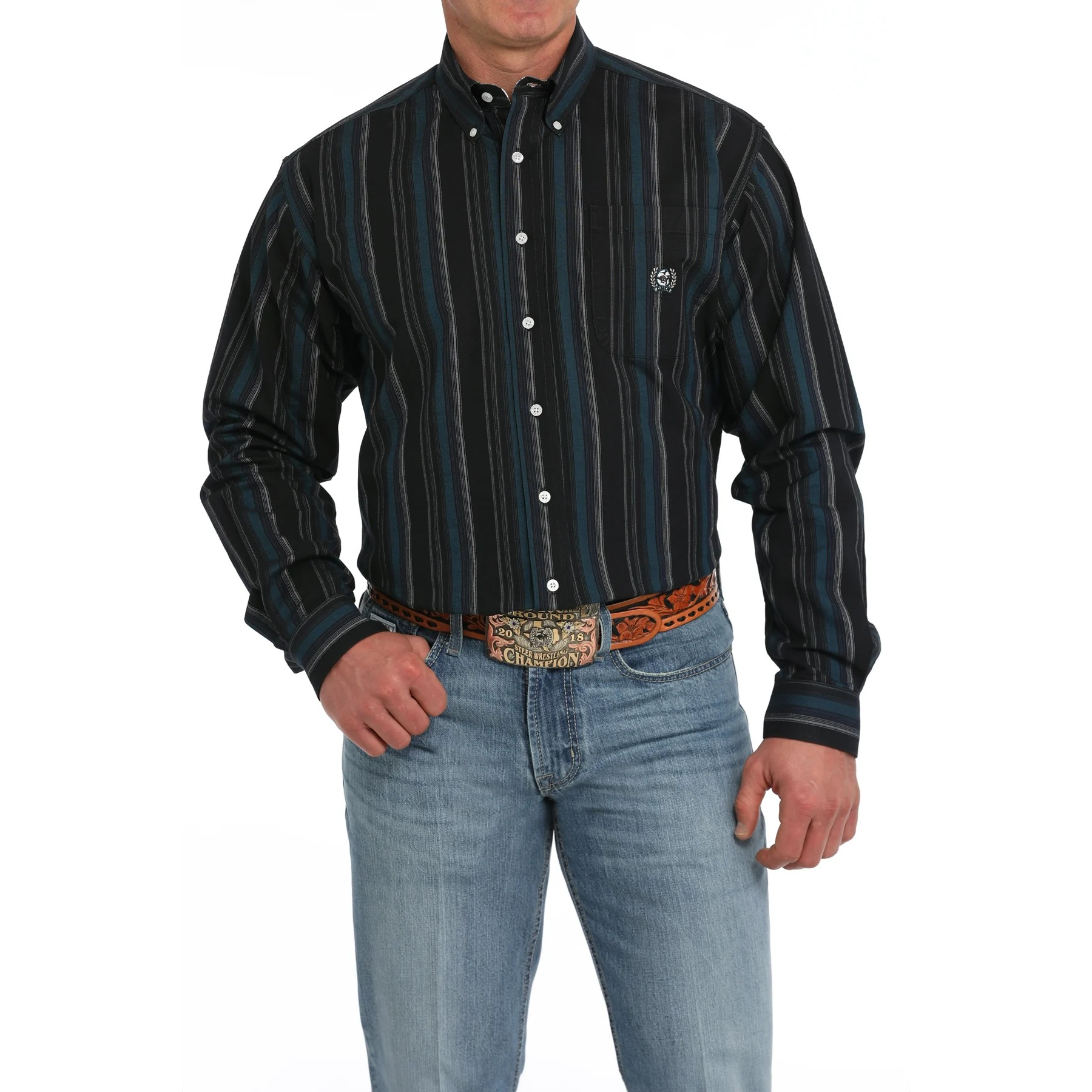 Cinch Men's Long Sleeve Oxford Stripe Shirt - Black
