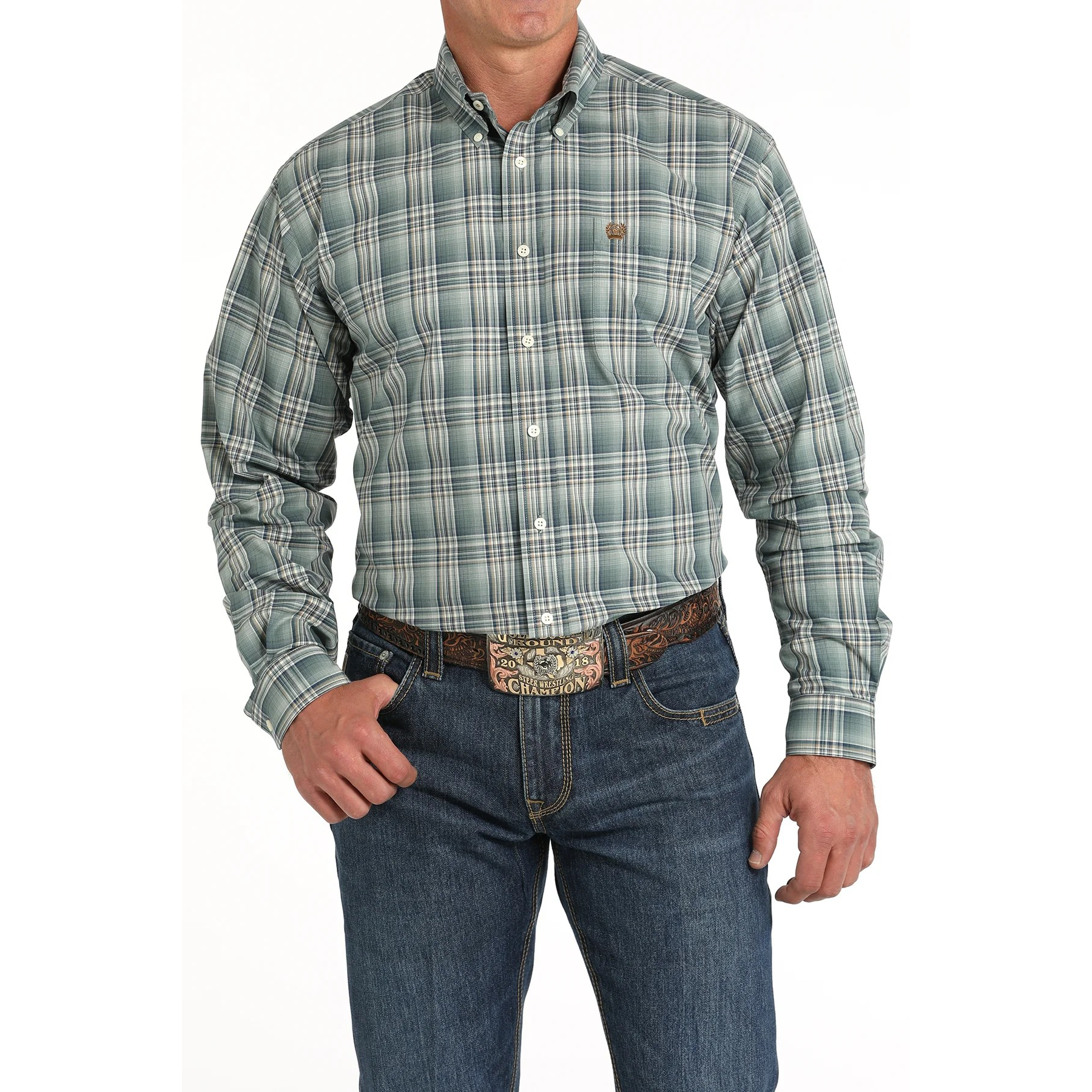 Cinch Men's Long Sleeve Plaid Button Down Western Shirt - Green