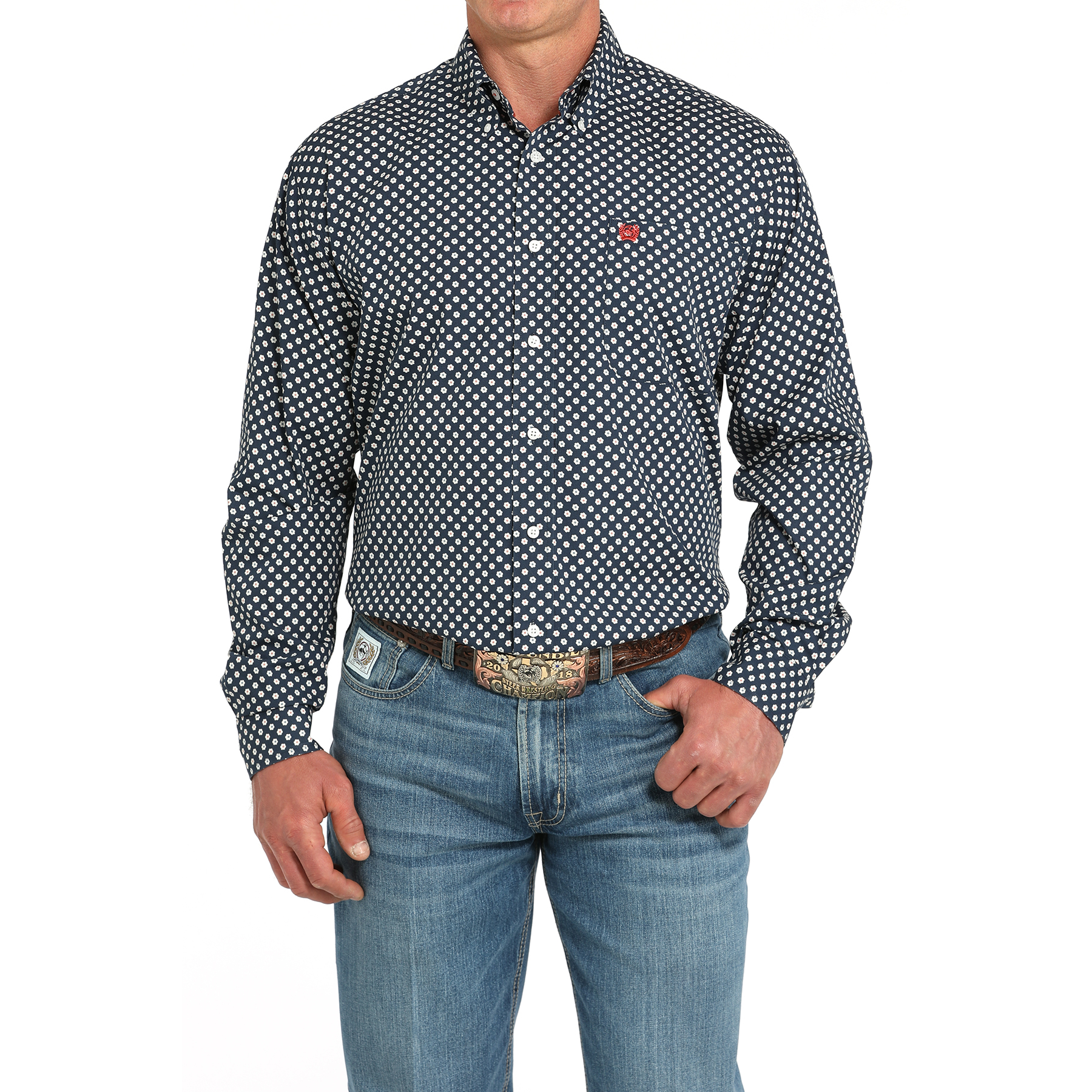 Cinch Men's Long Sleeve Print Shirt-Navy