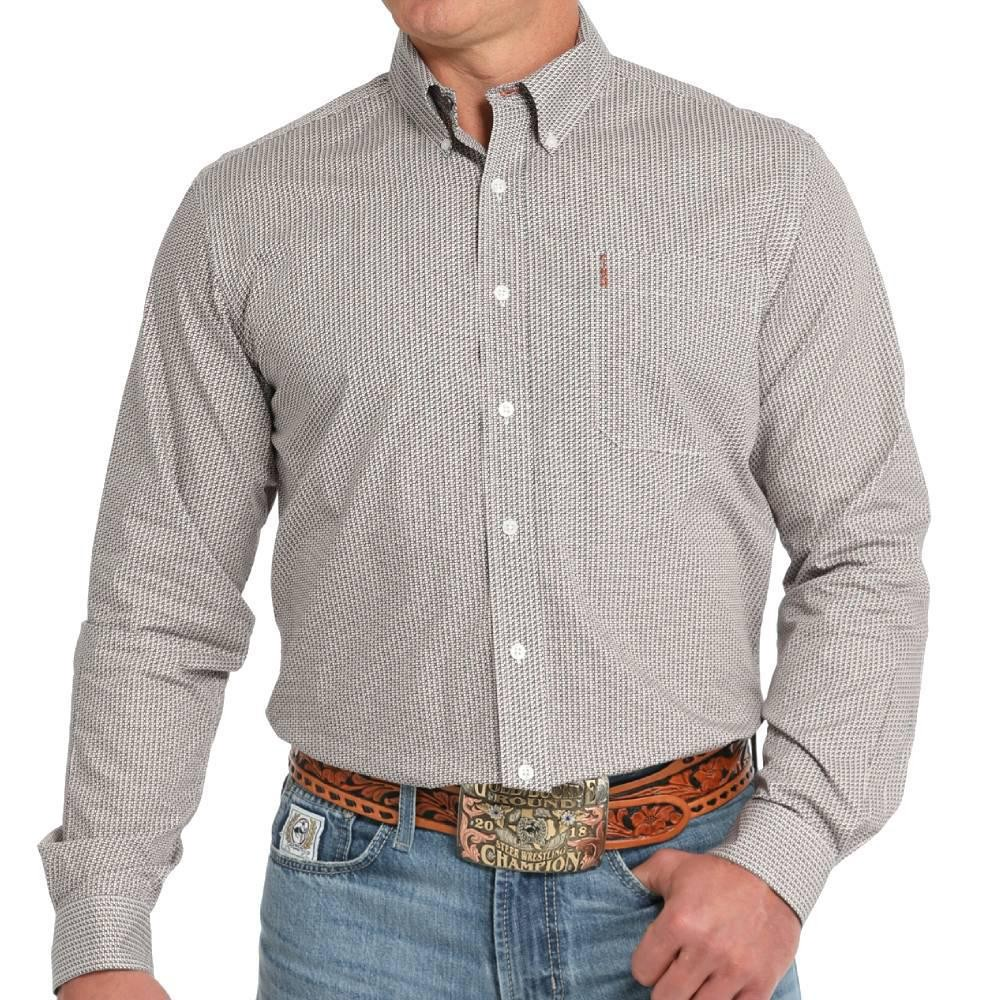 Cinch Men's Modern Fit Geo Print Button Down Shirt - White