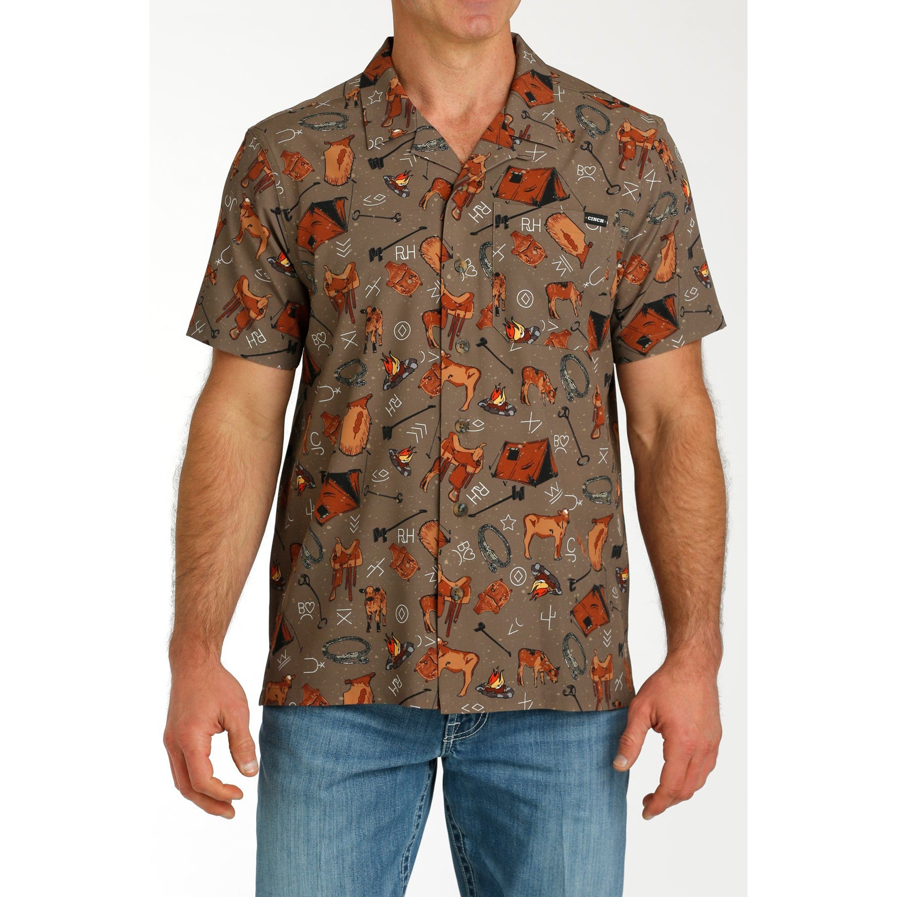 Cinch Men's Short Sleeve Camp Shirt - Brown