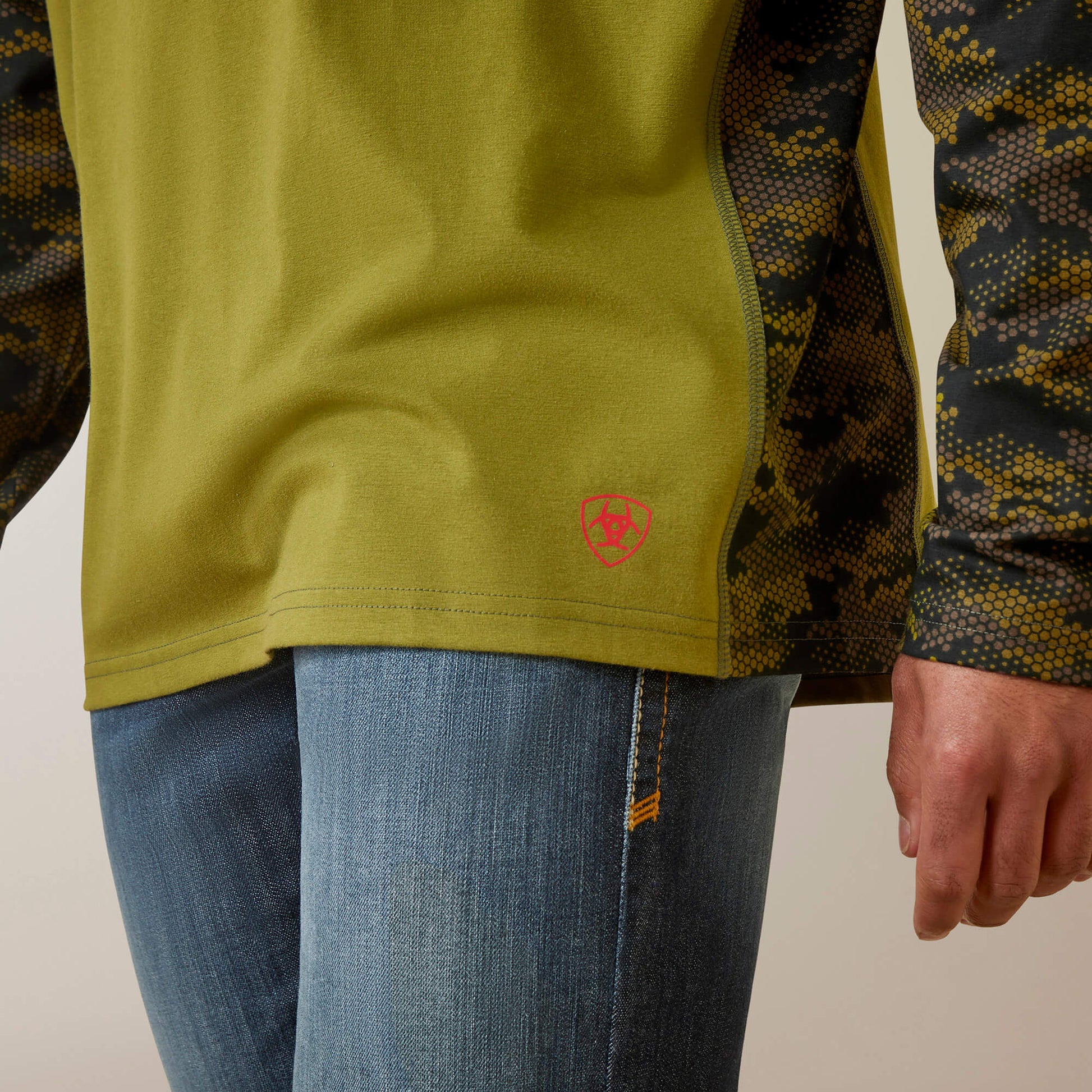 Ariat Men's Fire Resistant Stretch Camo Baseball T-Shirt - Avocado /Camo