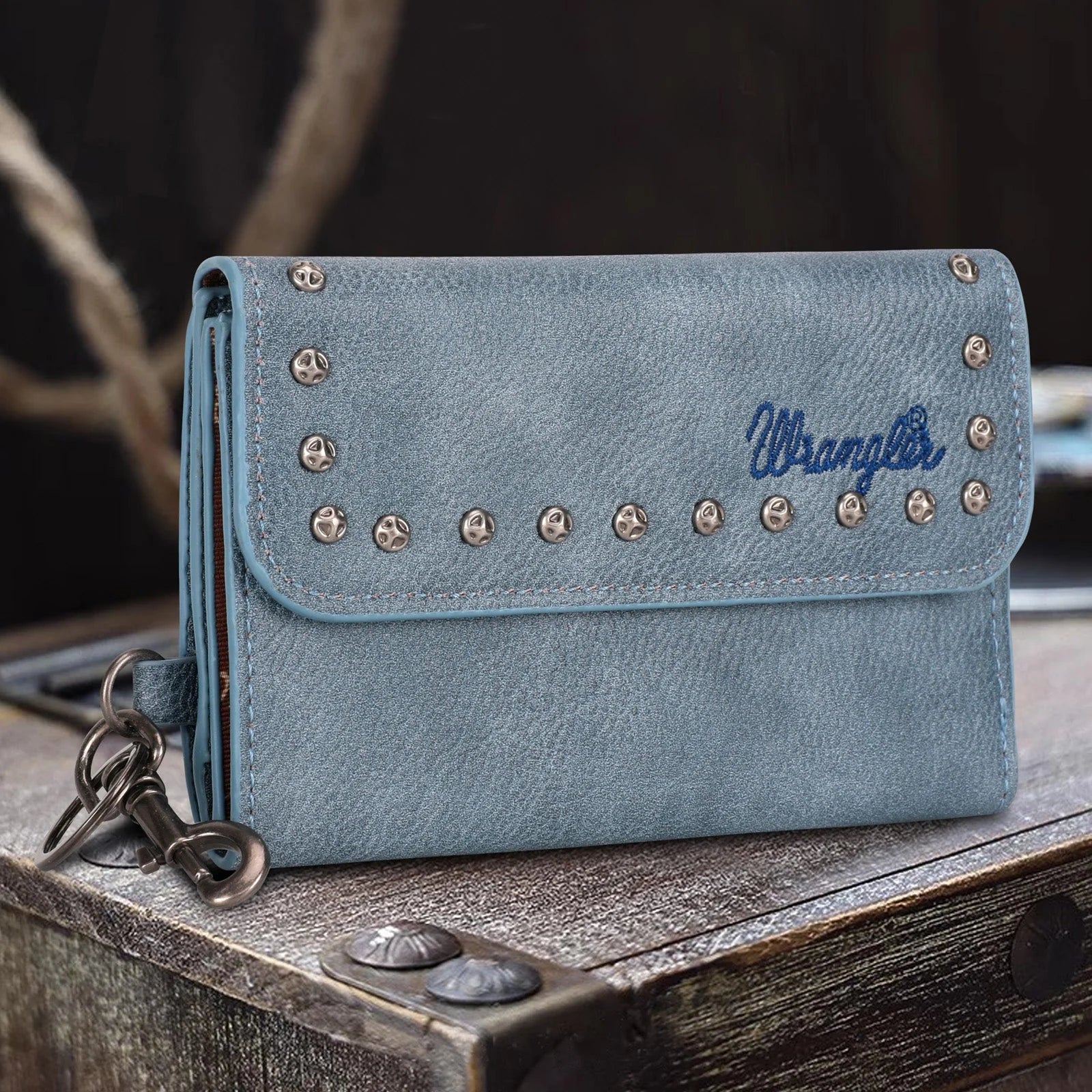 Wrangler Women's Studded Accents Tri-Fold Keychain Wallet - Jean
