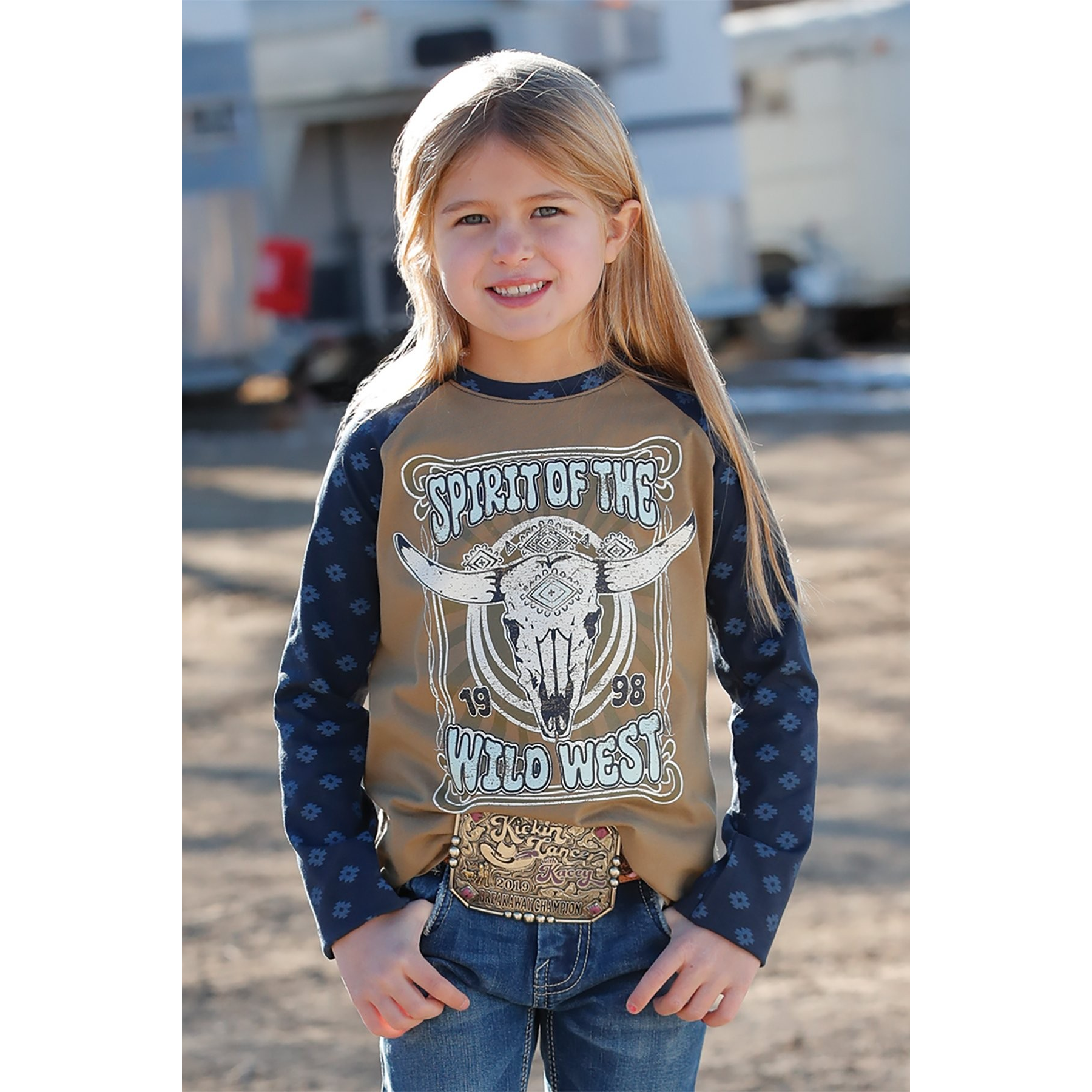 Cruel Girl Girl's Spirit Of The West Long Sleeve Raglan Shirt - Olive