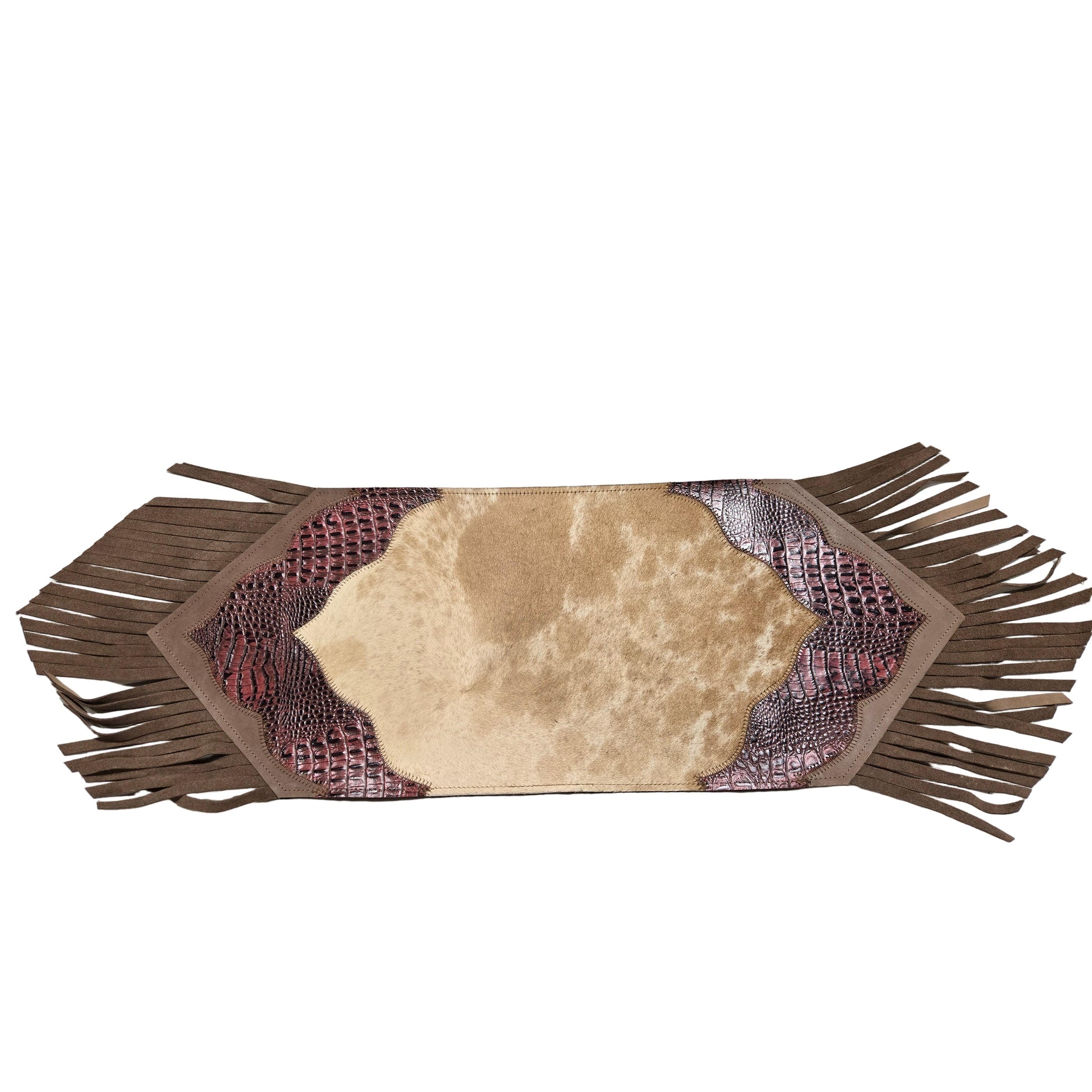 D2W Trading Mini Table Runner Model 2 Plain with Details & Fringes - Croc Red