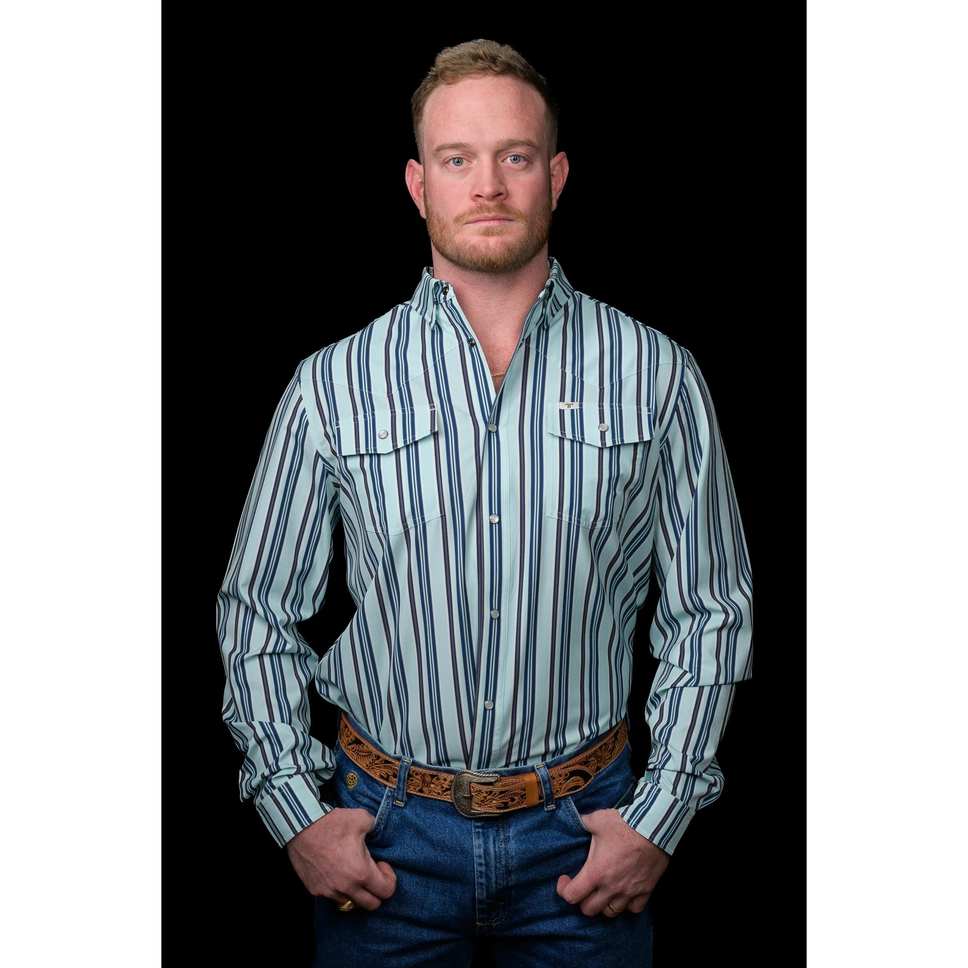 Ferrell Brand Men's The Jackson Long Sleeve Snap Shirt- Blue