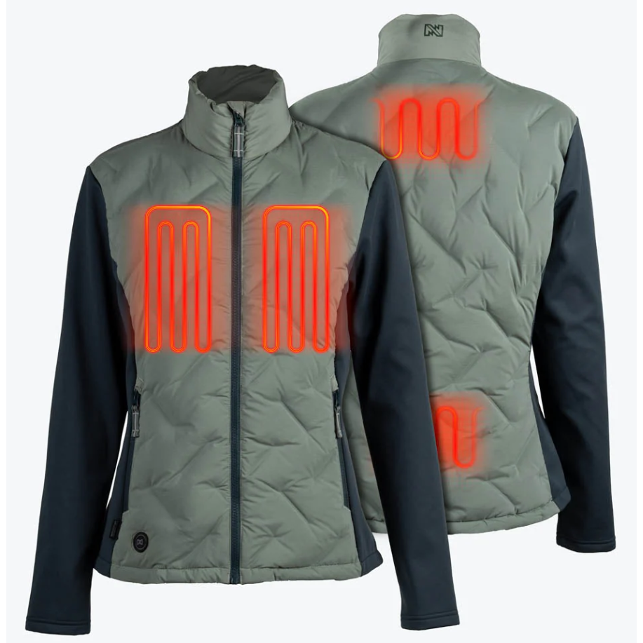 - Engineered for motion, styled for the everyday. The Aria Hybrid Heated Jacket delivers targeted warmth with four heat zones and a lightweight down blend that won’t weigh you down