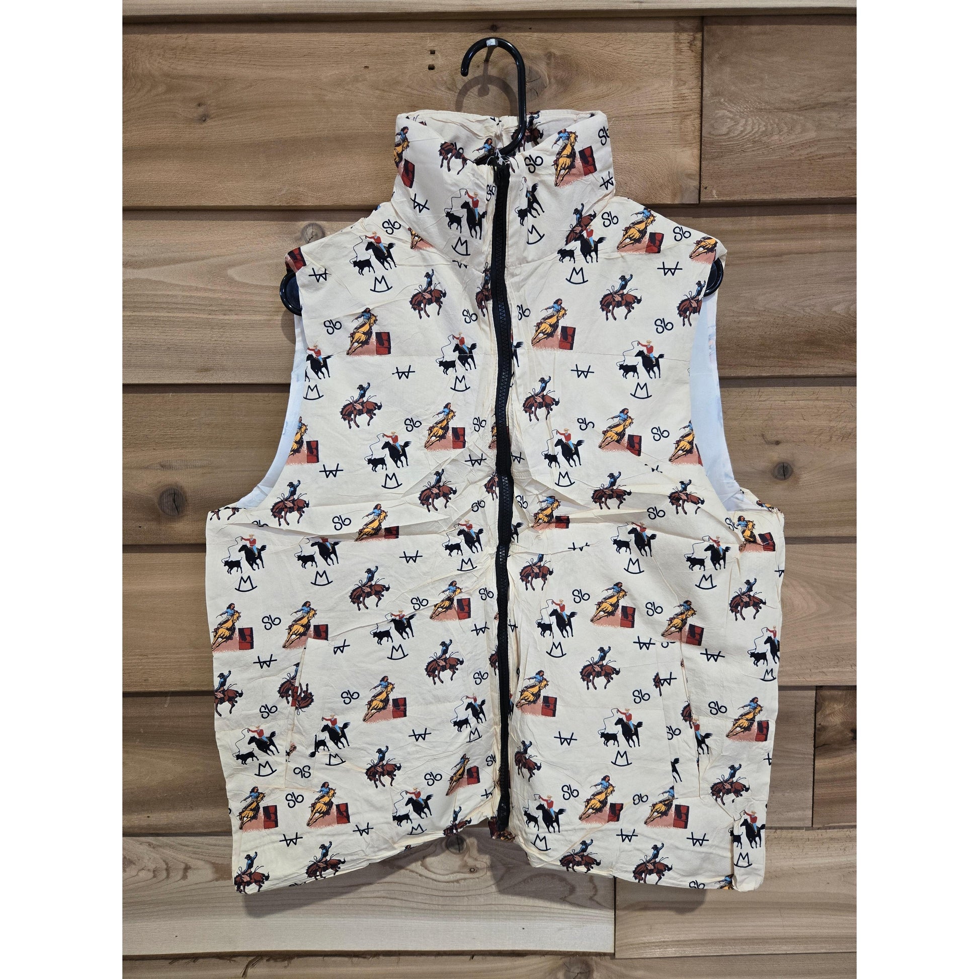 - Check out this great vest in the Front Label Vintage Cowboy print