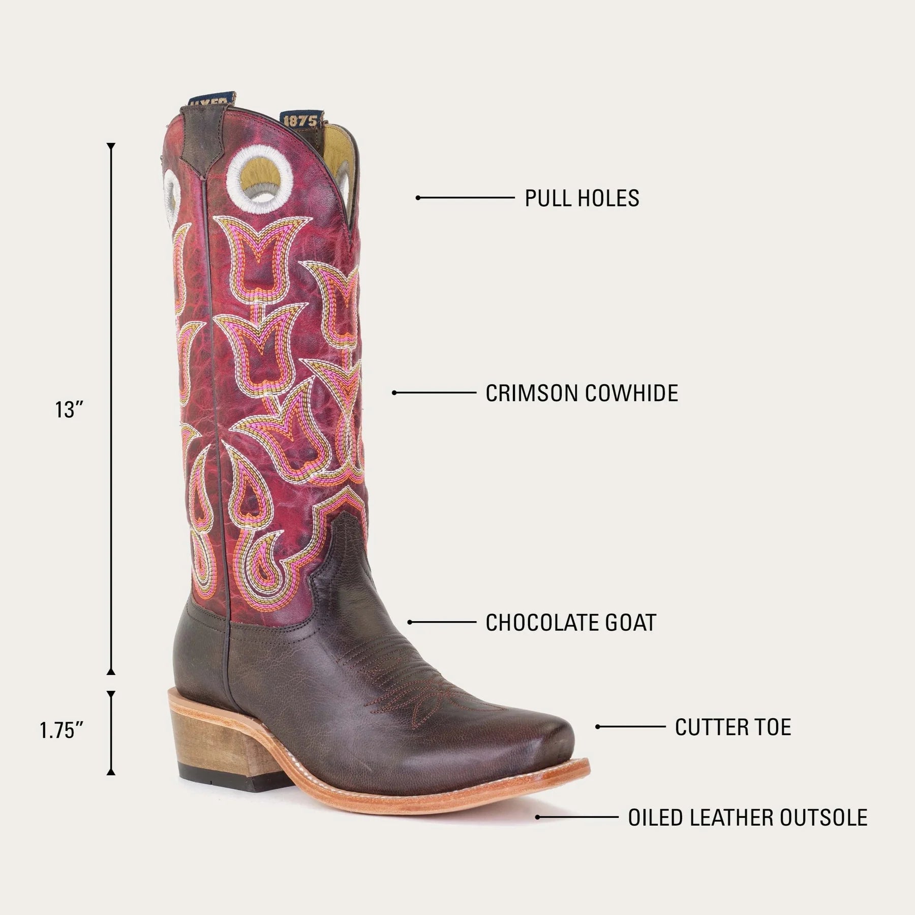 • Chocolate goat leather vamp