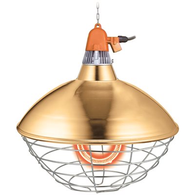 - Included reflecting cone directs heat downward toward livestock.
