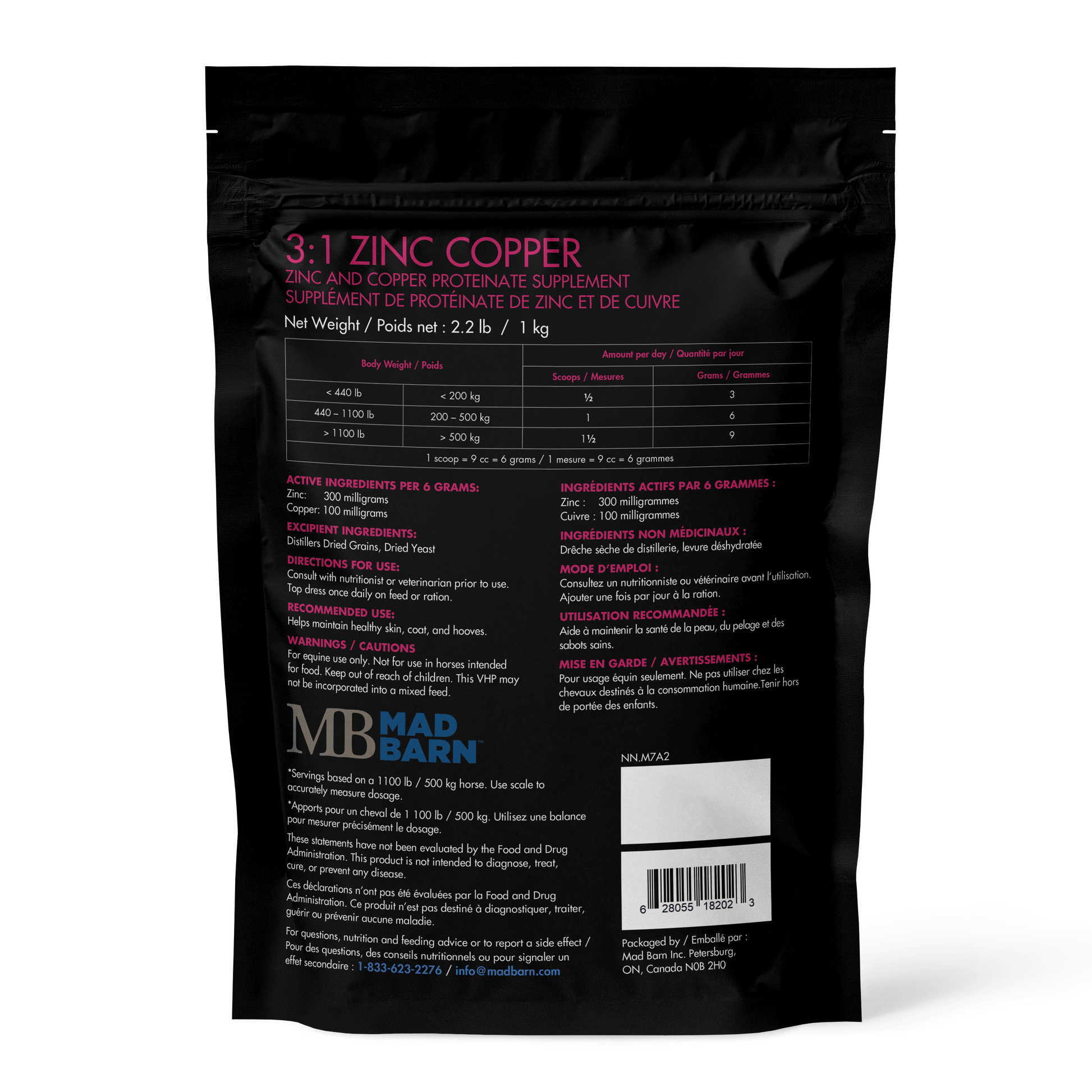 - The 3:1 Zinc Copper supplement provides two essential trace minerals in an ideal balance to help maintain healthy skin, coat, and hooves in horses