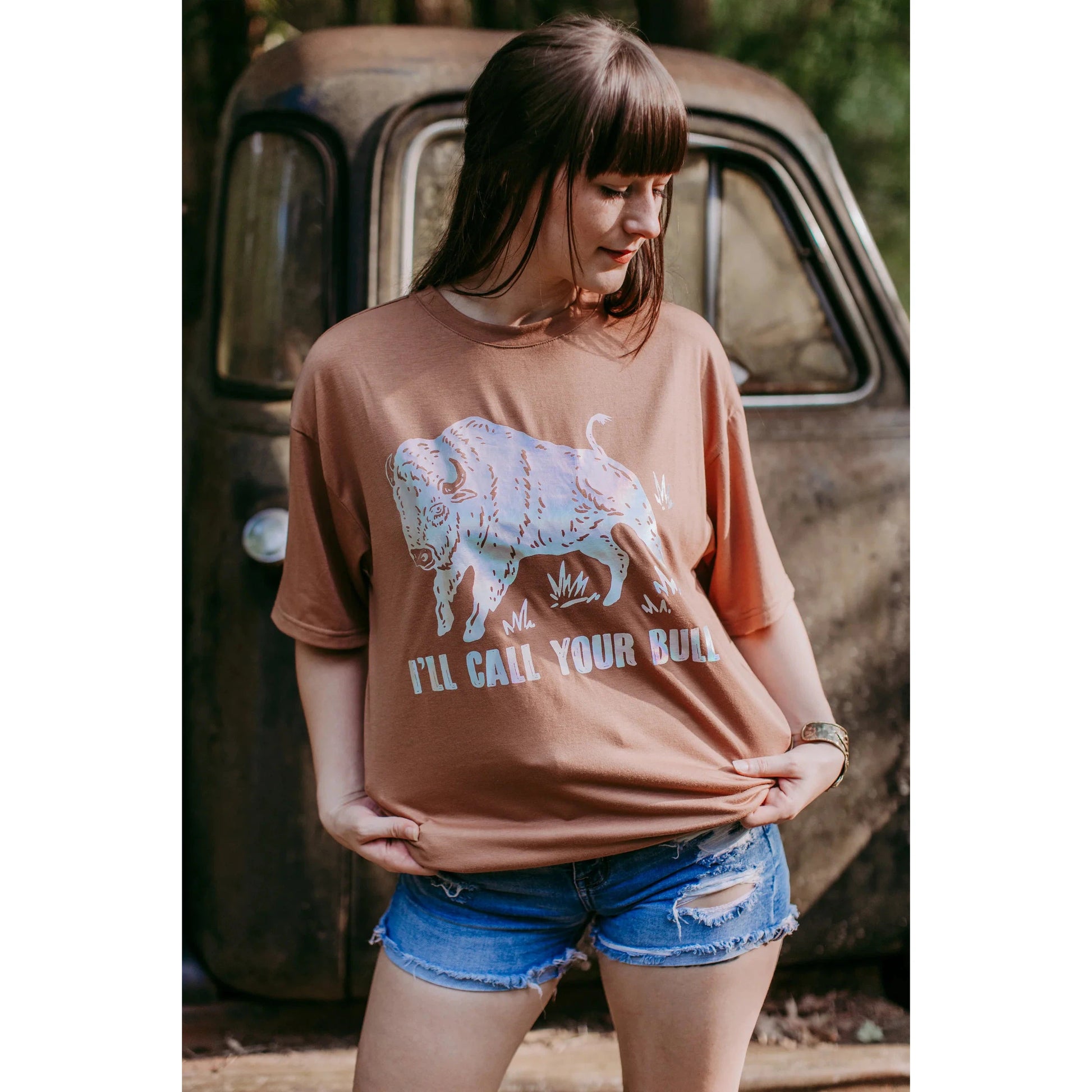 Merigold Kiss Women's Bull Gold Foil T-Shirt Shirt - Brown