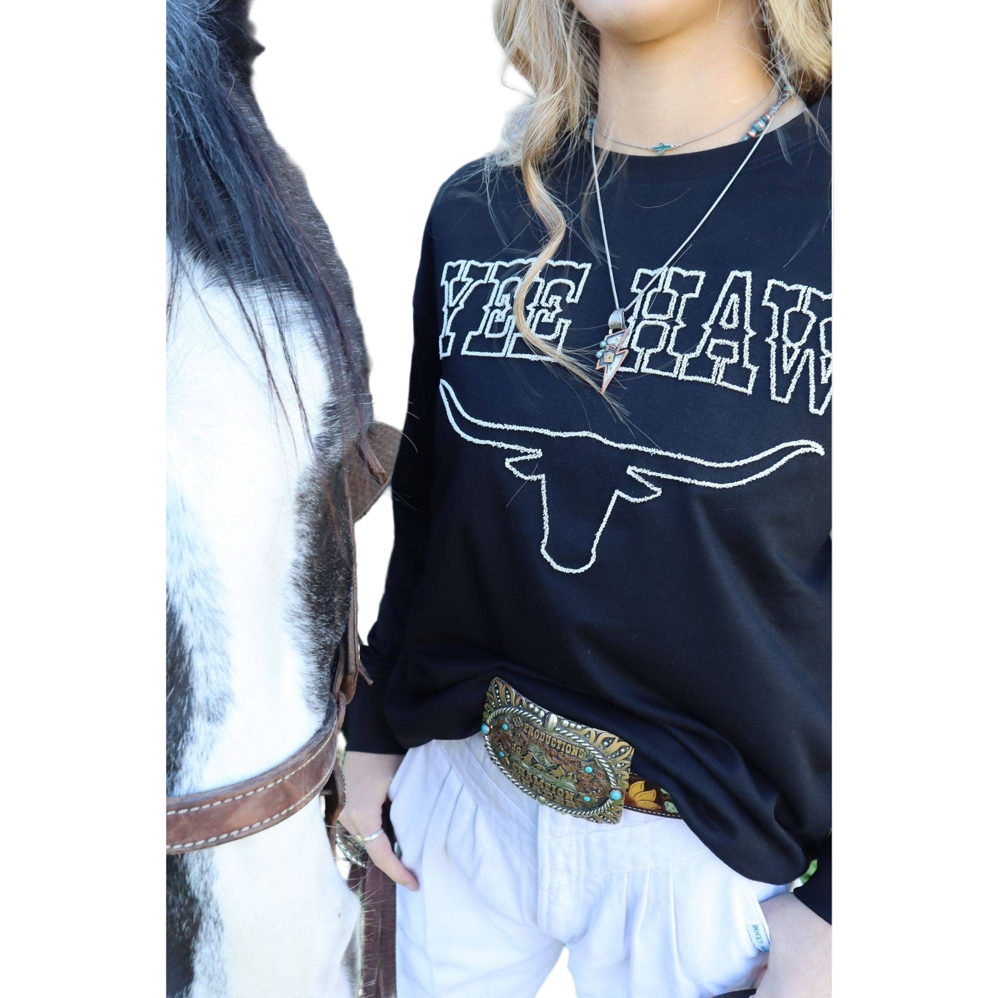 Merigold Kiss Women's Yee Haw Longhorn Long Sleeve Shirt - Black