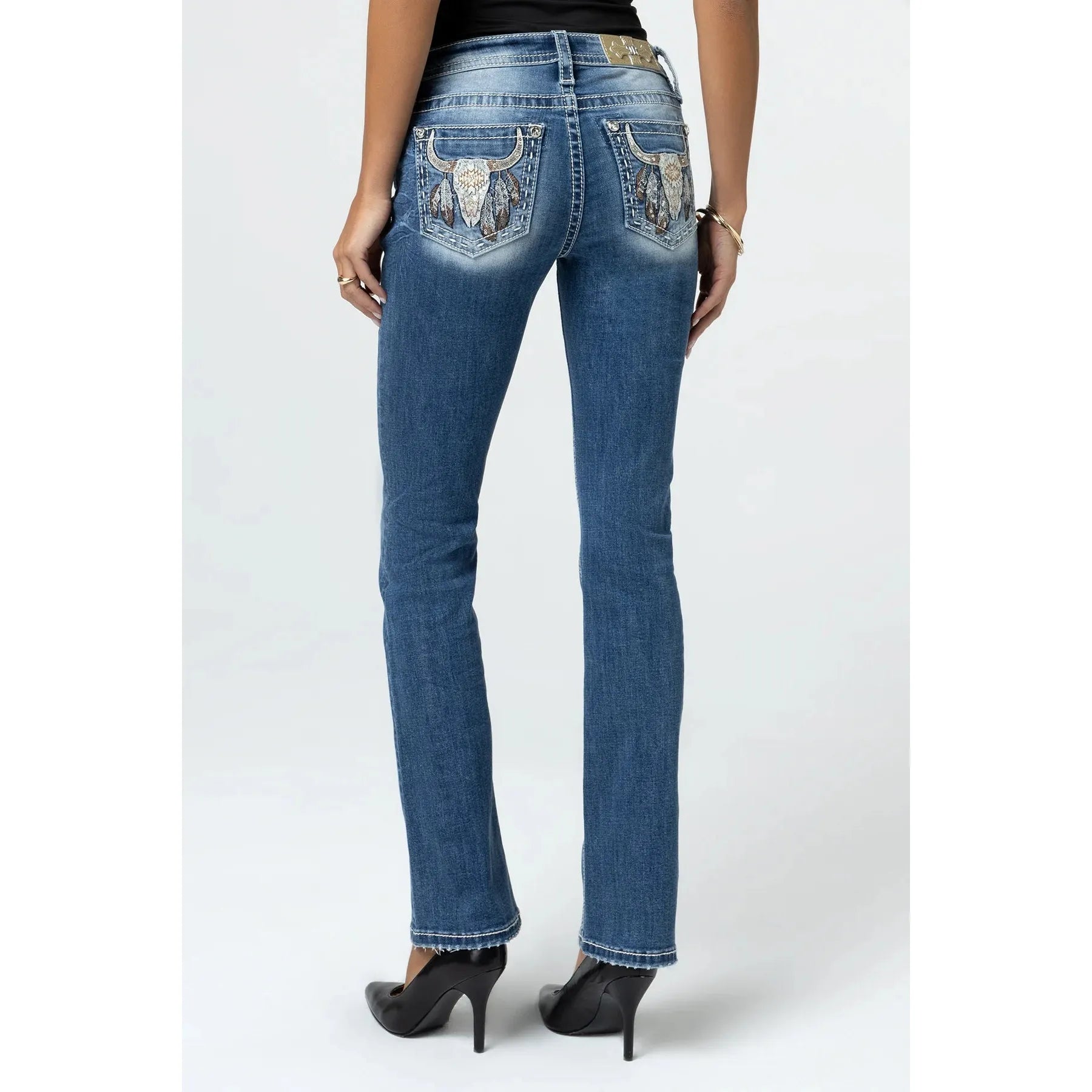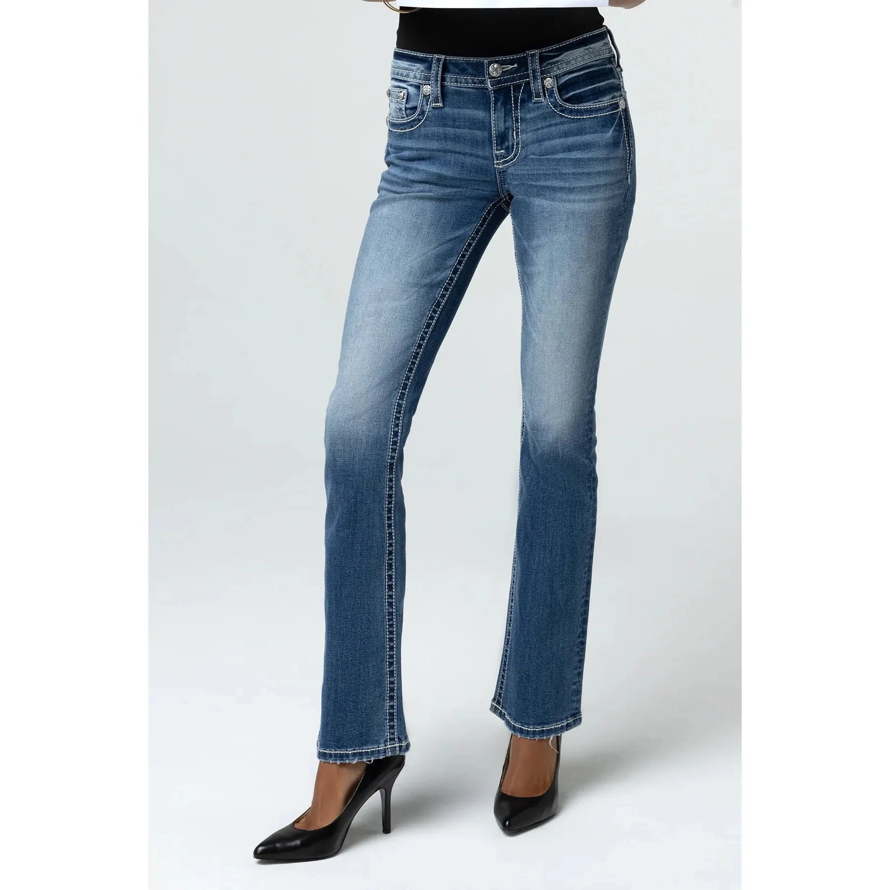 Miss Me Women's Mid Rise Seraphina Boot Cut Jeans- Medium Wash