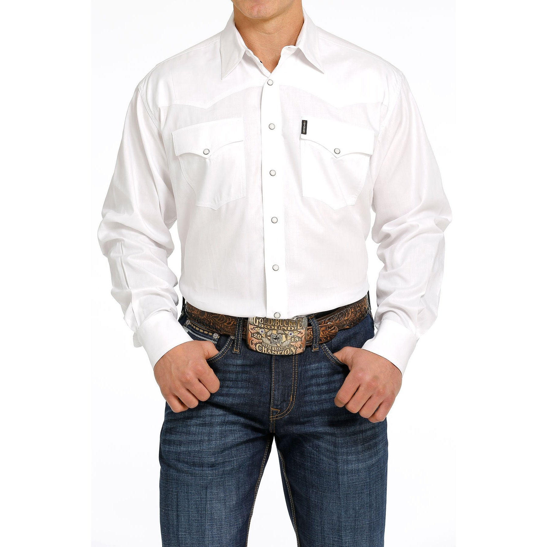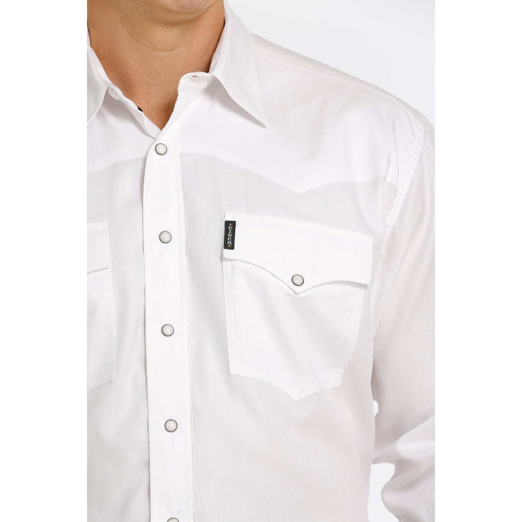 Cinch Men's Herringbone Western Snap Long Sleeve Shirt - White