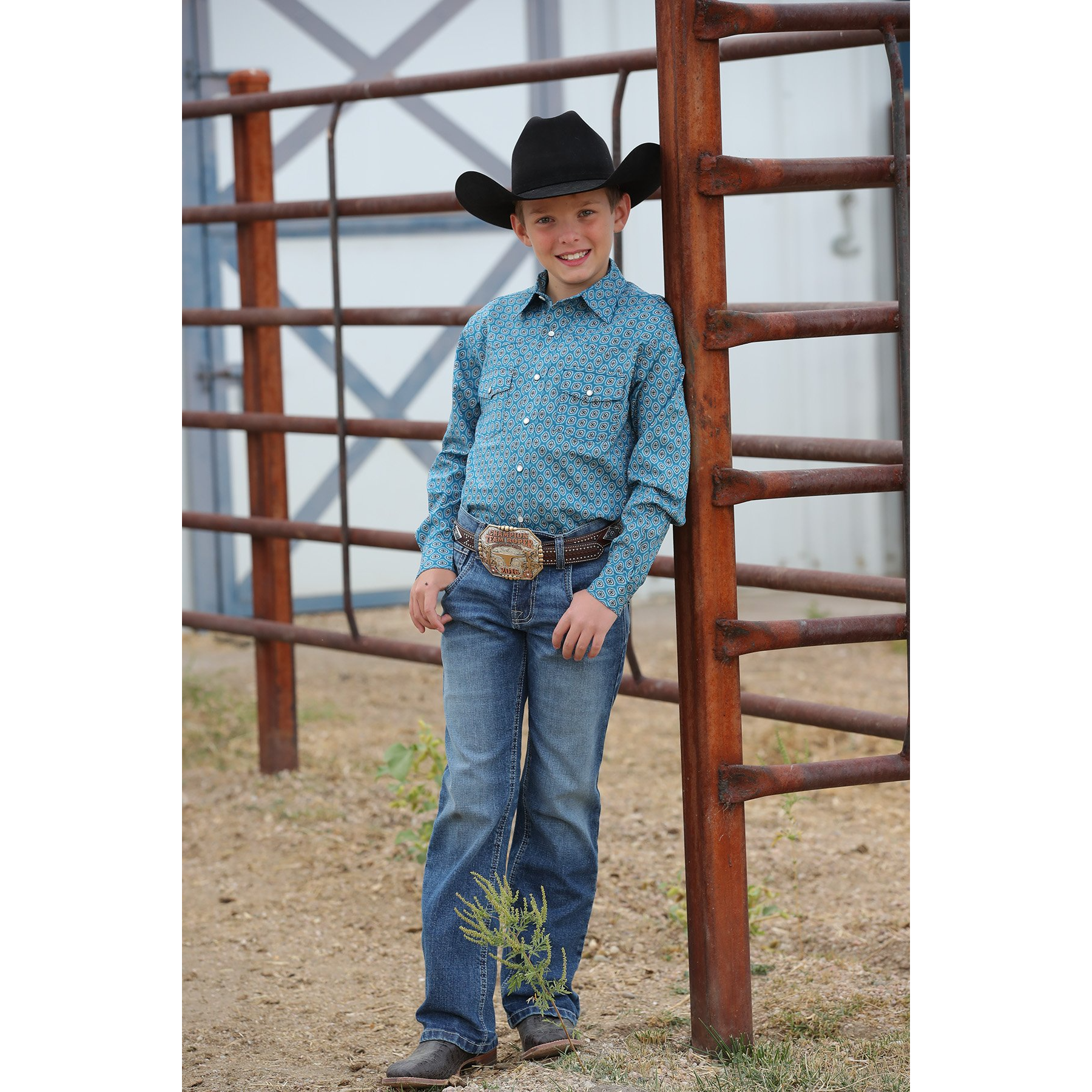 Cinch Boys Geometric Print Button-Down Western Shirt - Blue