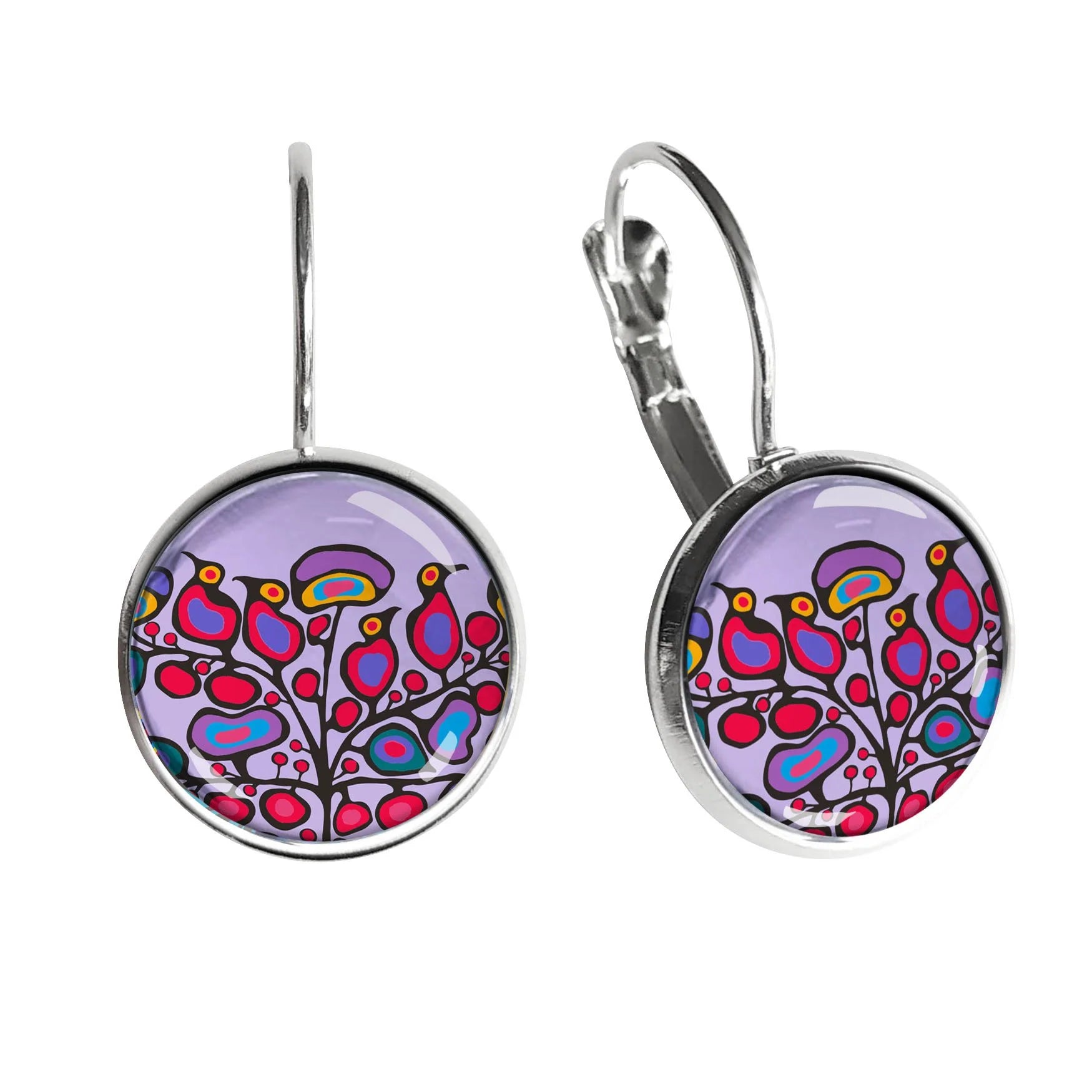 Norval Morrisseau Woodland Floral Dome Glass Earrings