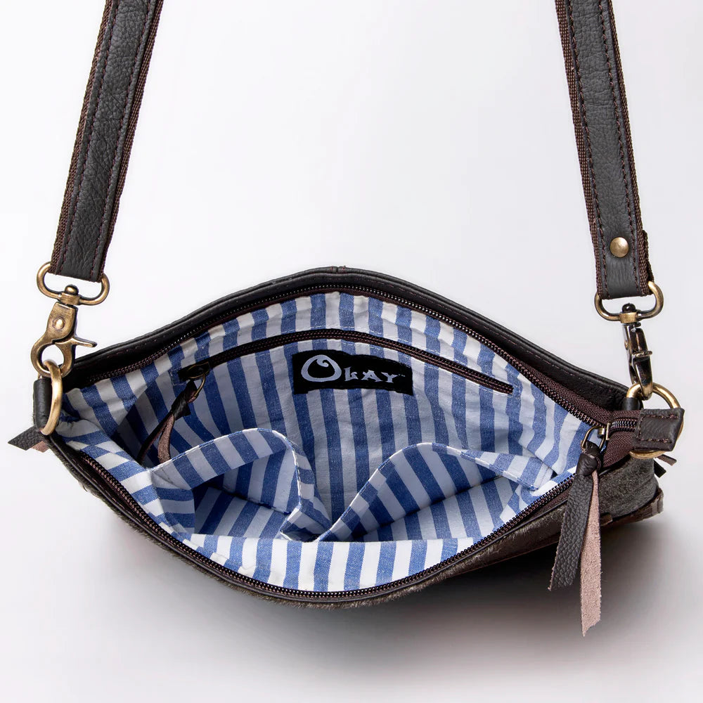 Ohlay Hand Tooled Hair On Large Crossbody Purse - Brown/Yellow