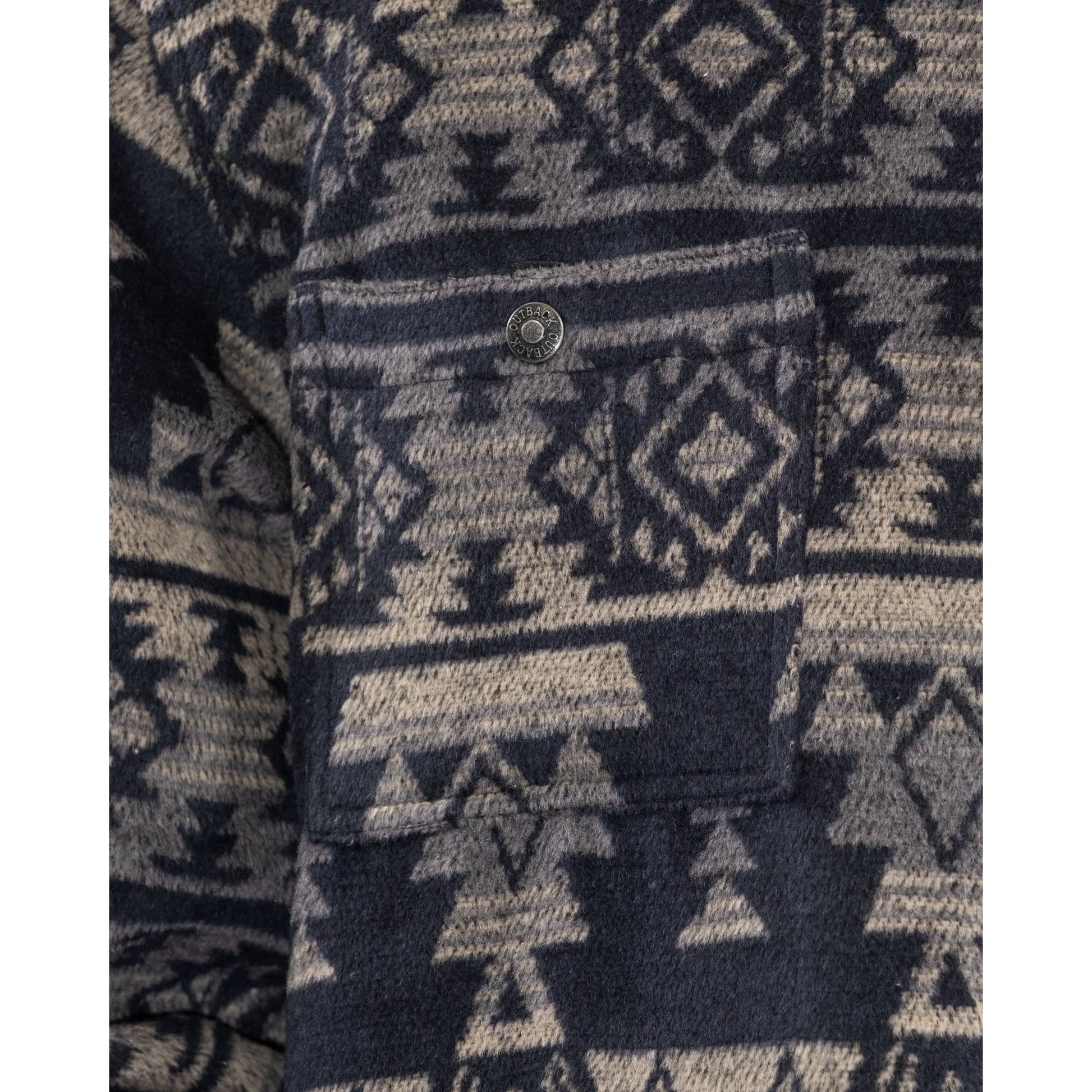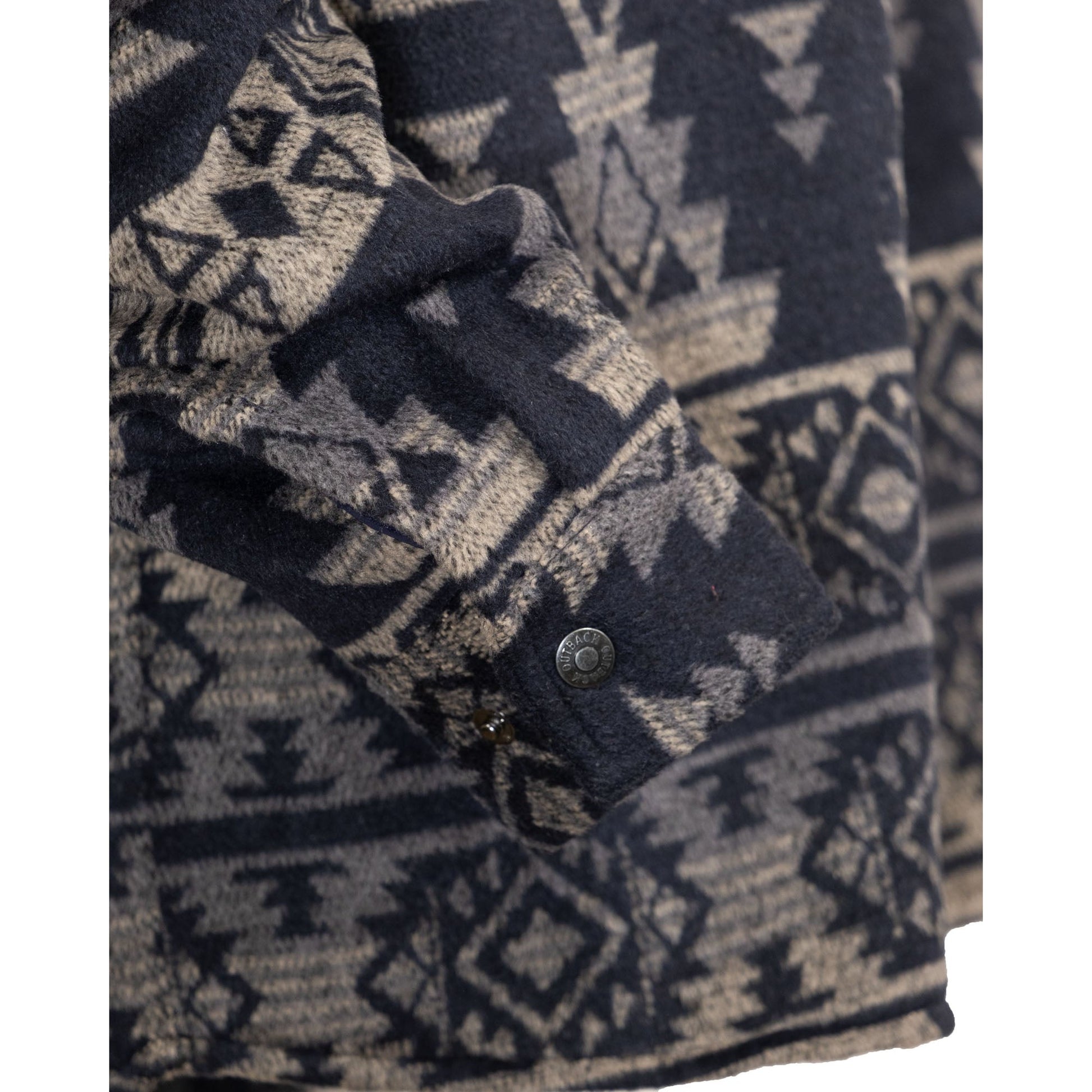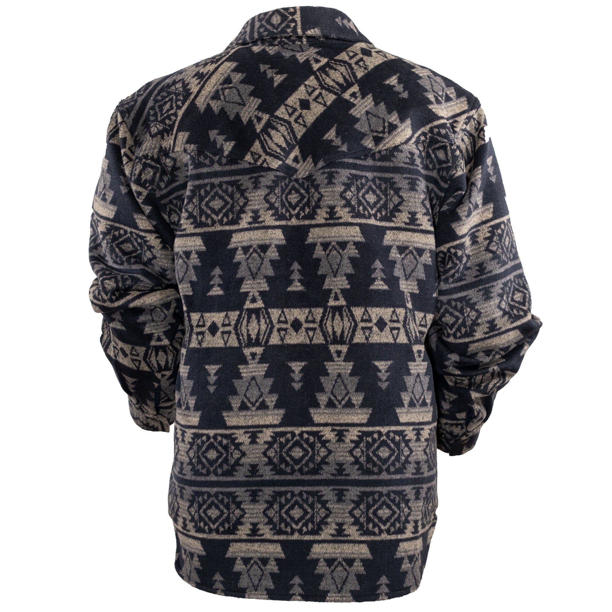 - Made from a handsome Aztec pattern, this heavy-duty shirt jacket snaps up the front and features an extended hemline for extra coverage