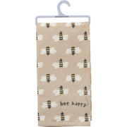 - Features replicated bumblebee designs with ""Bee Happy"" sentiment in a neutral palette