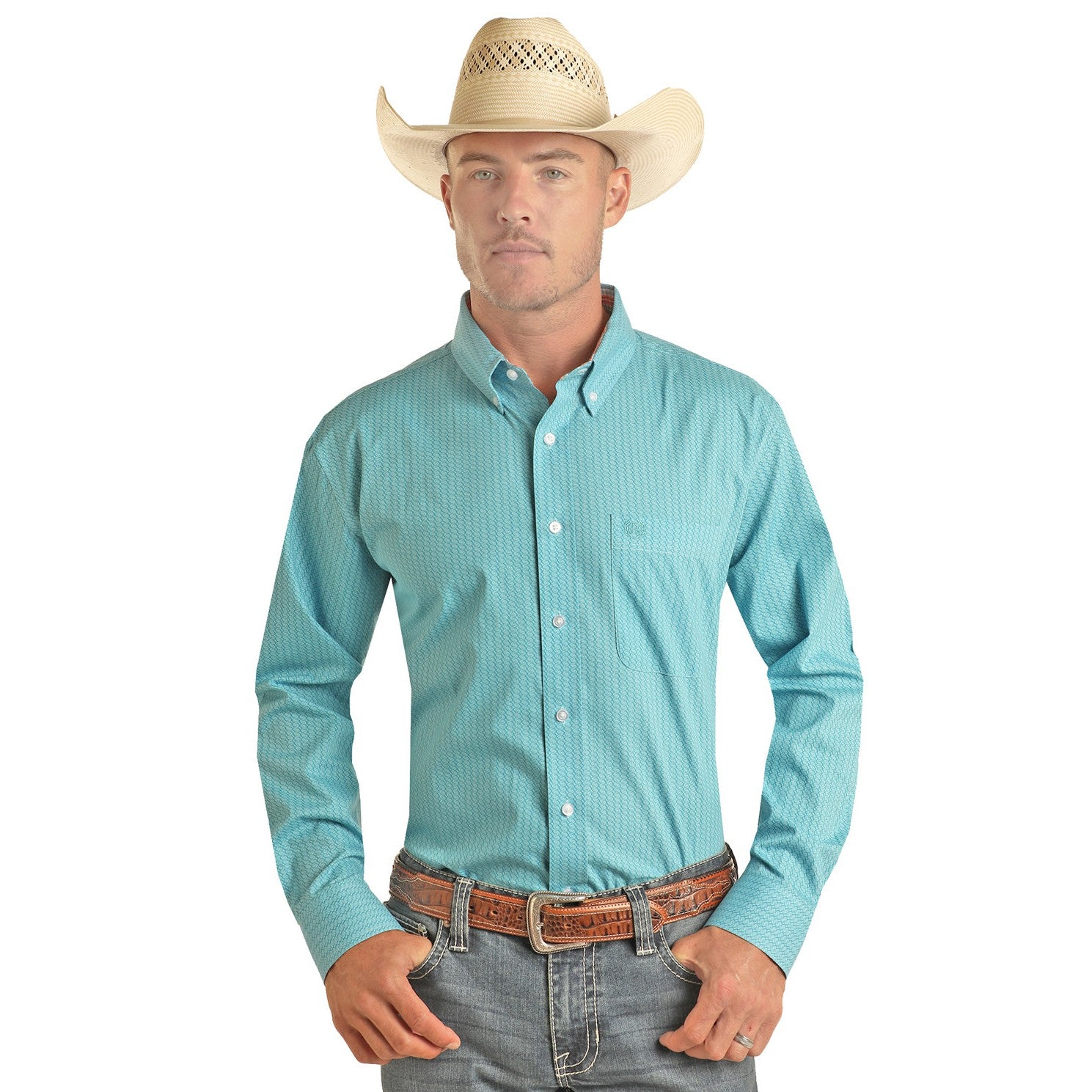 Panhandle Men's Long Sleeve 1 Pocket Button Down Shirt - Turquoise