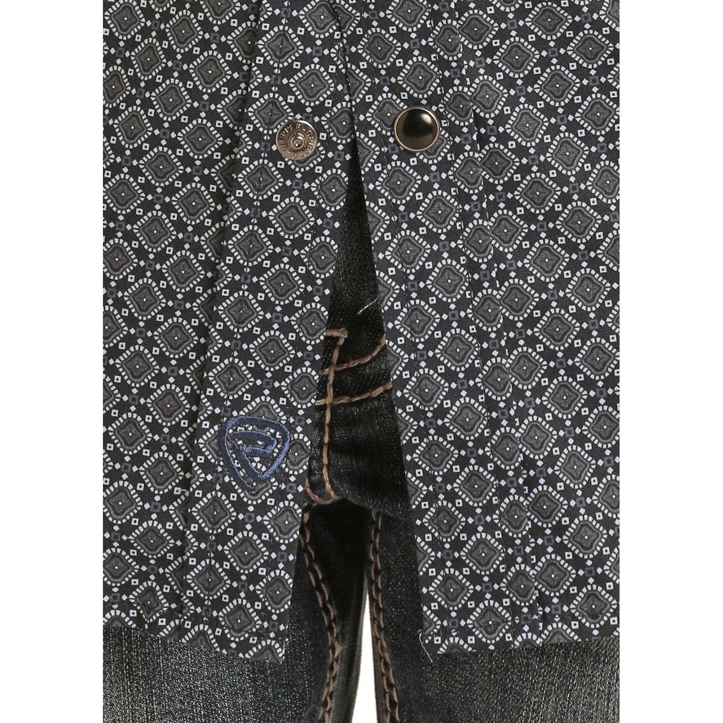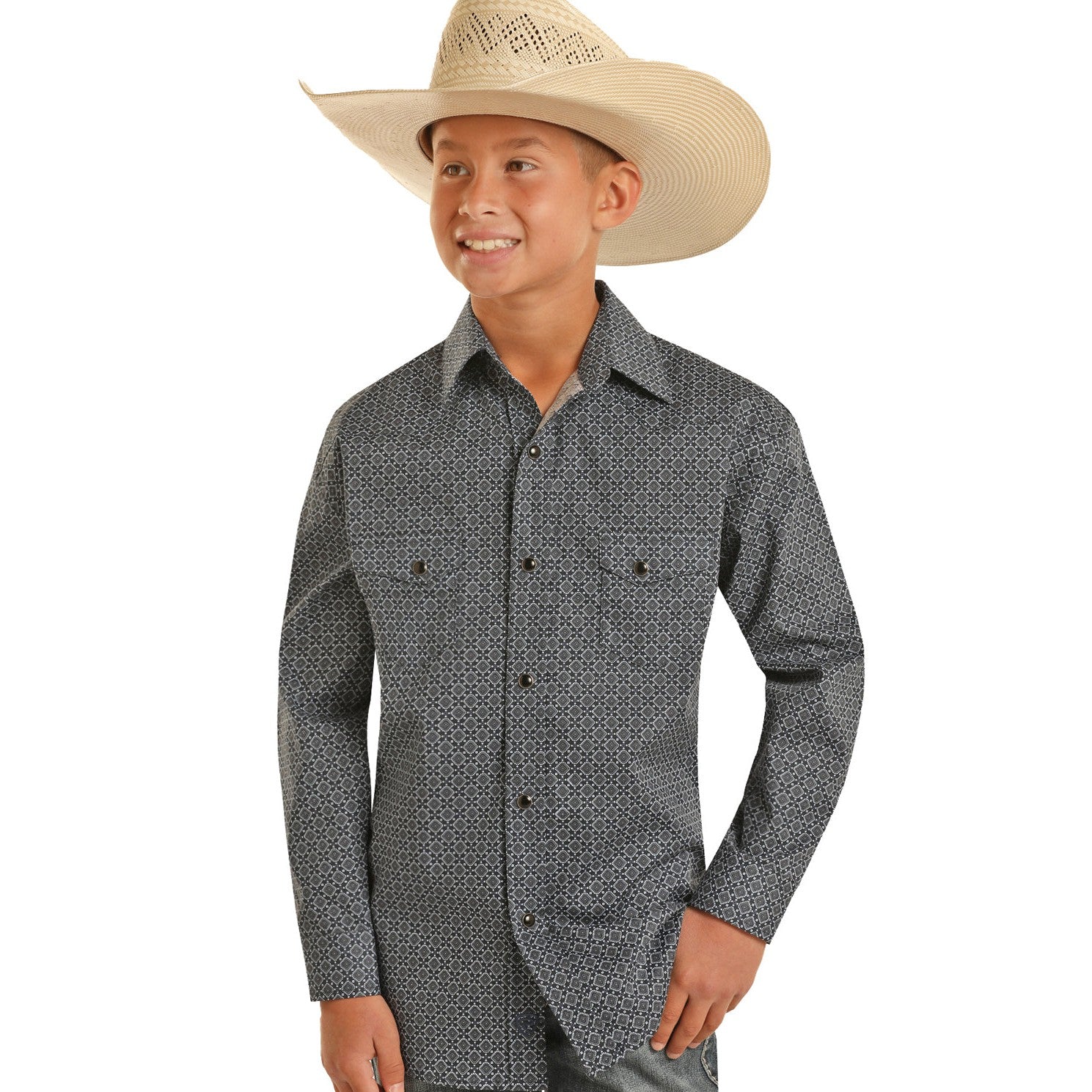 Rock & Roll Boy's Long Sleeve 2 Pocket Geometric Snap Shirt - Blue