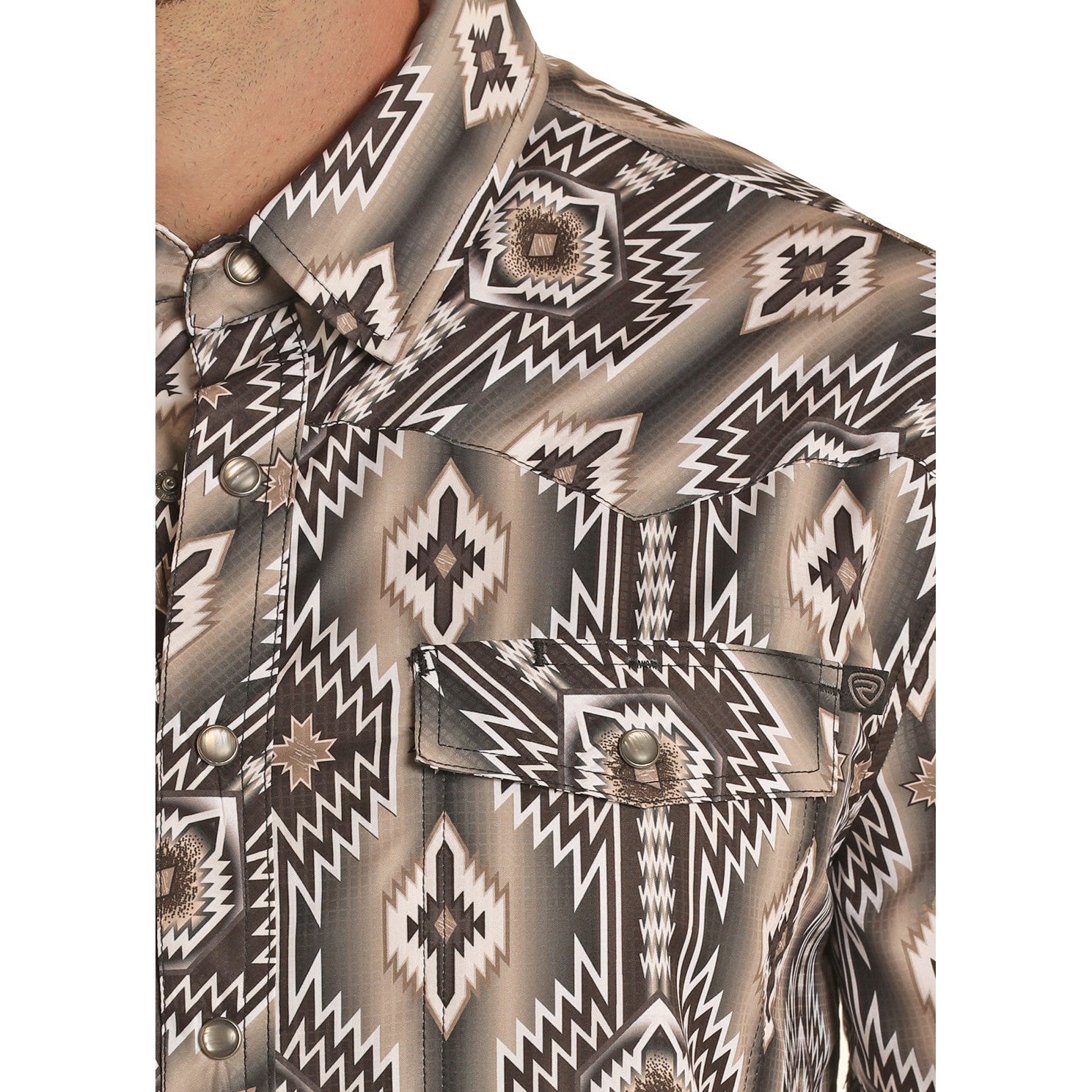 Rock & Roll Men's Tek Short Sleeve 2 Pocket Aztec Snap Shirt - Black