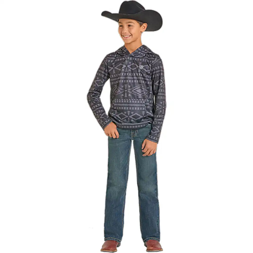 Rock & Roll Boy's Two Tone Embroidered Bootcut Jeans- Medium Vintage