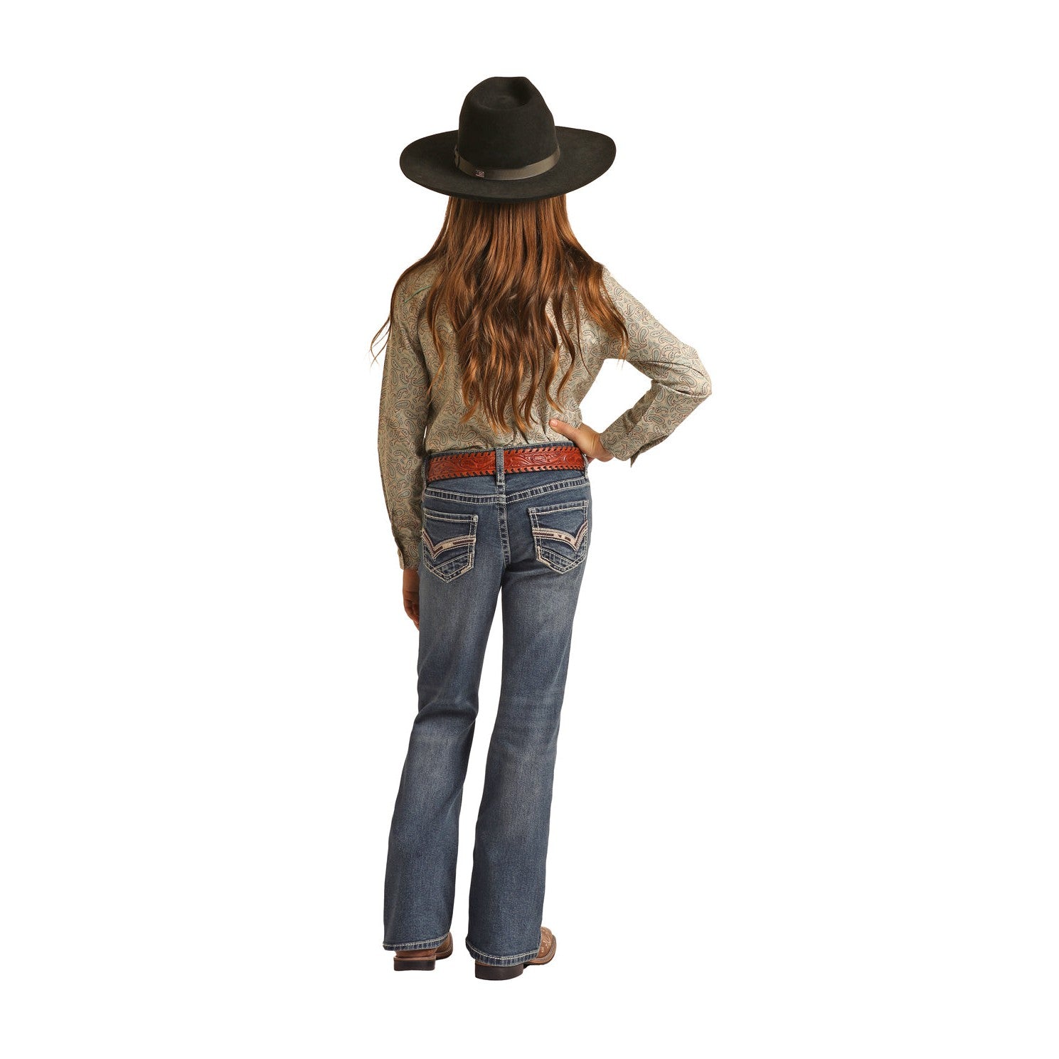 Rock & Roll Girl's Cowhide Embroidered Midrise Boot Cut Jeans - Medium Wash
