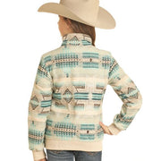 Rock & Roll Girl's Henley Aztec Jacquard Pullover- Tan