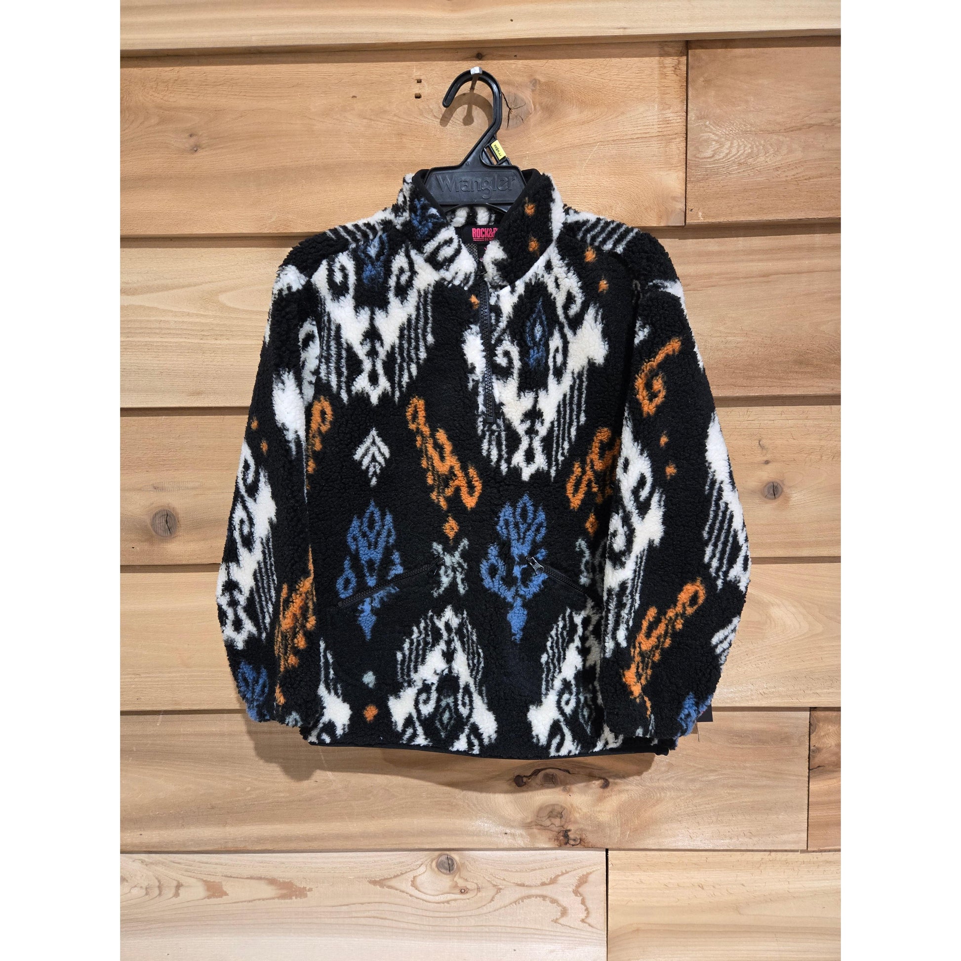 Rock & Roll Girl's Ikat Print Sherpa - Black