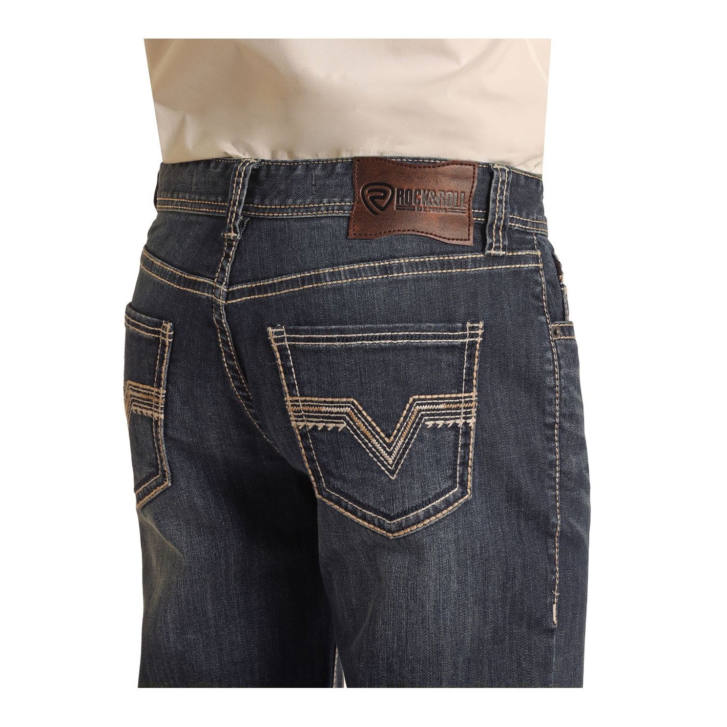 Rock & Roll Men's Two Tone Rope Stitch Straight Jeans