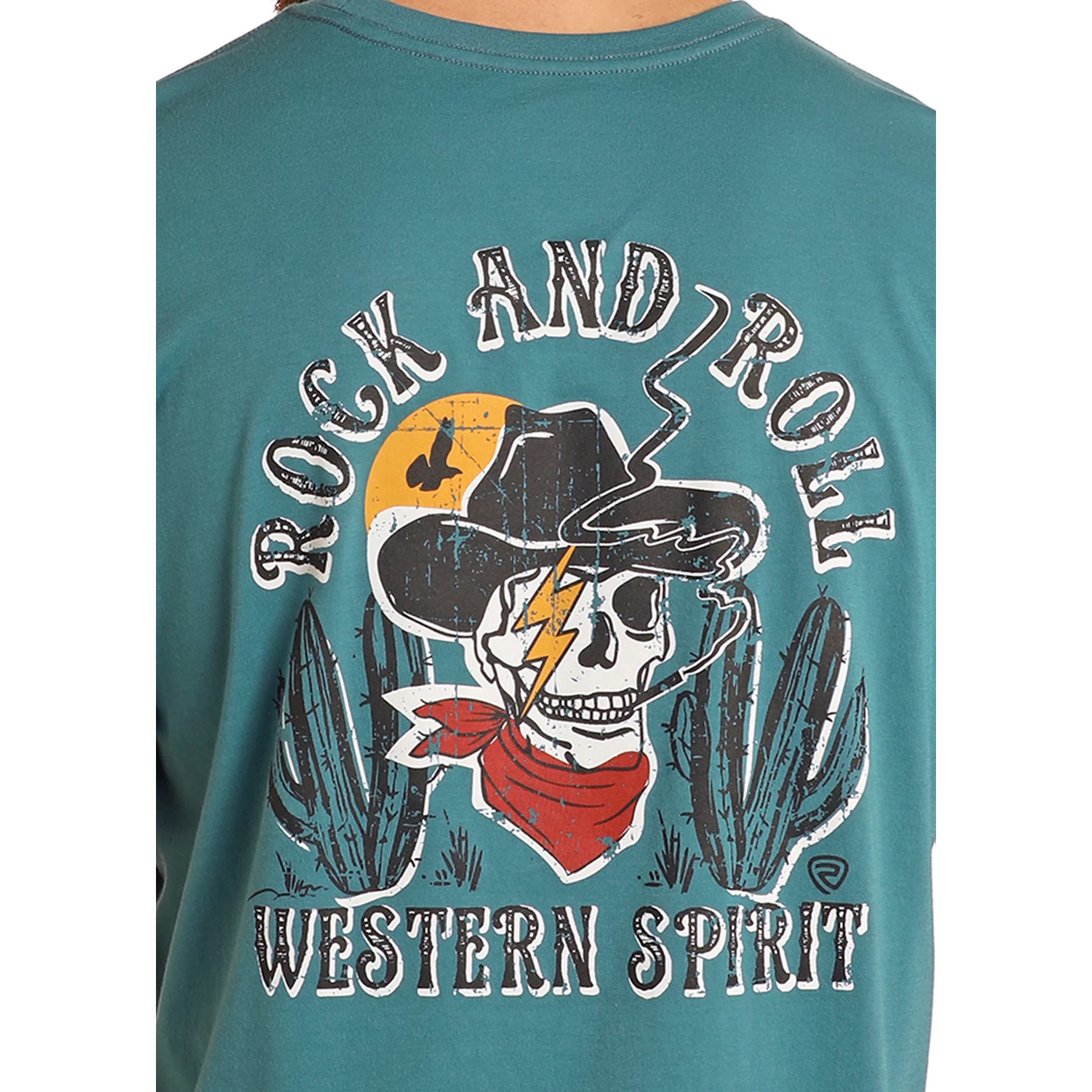 Rock & Roll Unisex Graphic Skull Short Sleeve Tee Shirt-Teal