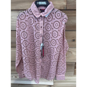 Rock & Roll Women's Long Sleeve Eyelet Boyfriend Shirt- Rose/Mauve