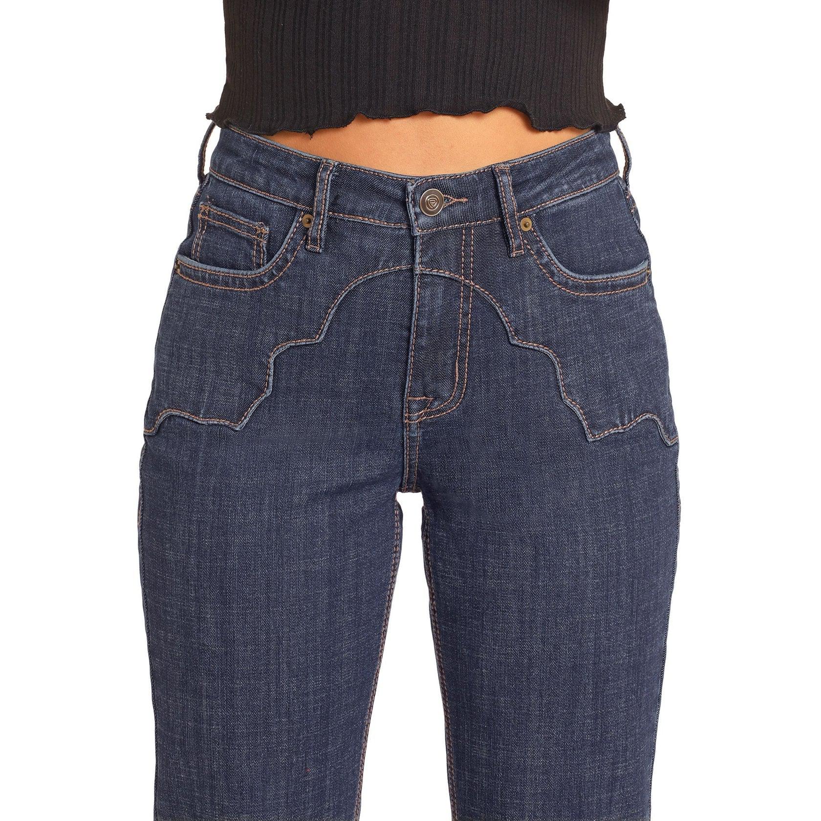 Rock & Roll Women's High Rise Western Yoke Bootcut Stretch Jeans - Dark Wash