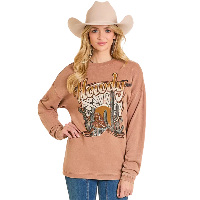 Rock & Roll Women's Howdy Graphic Pullover - Brown
