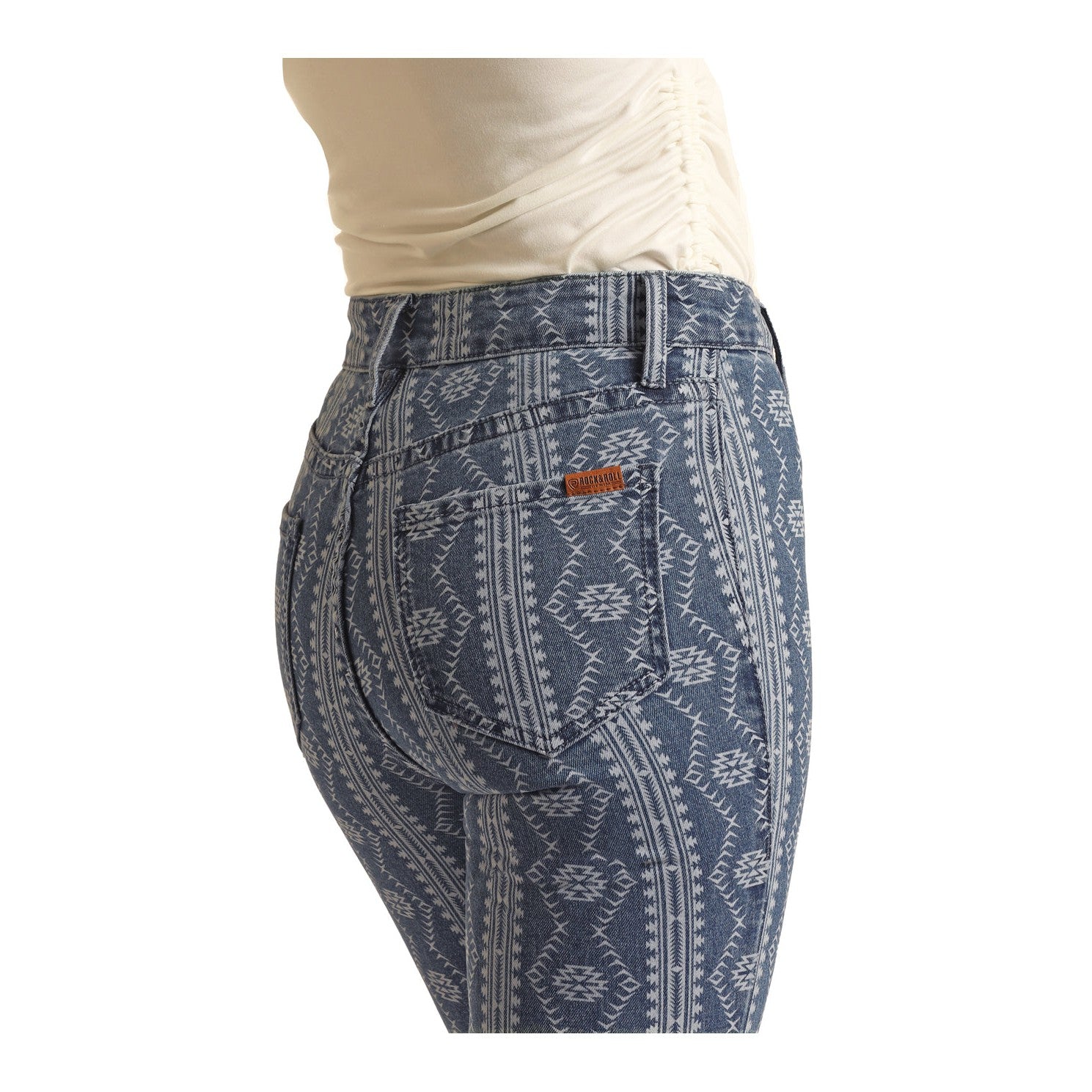 Rock & Roll Women's Indigo Aztec Button Flare Jeans - Medium Wash