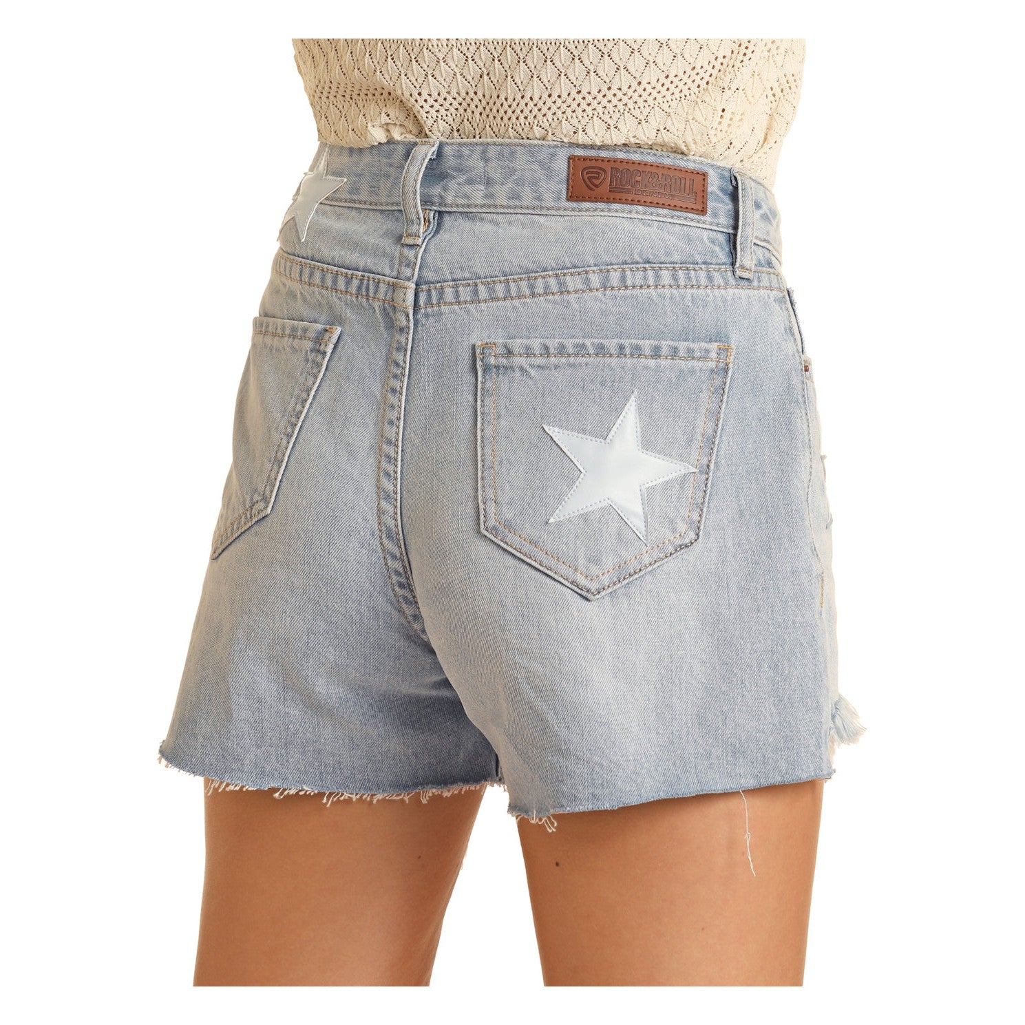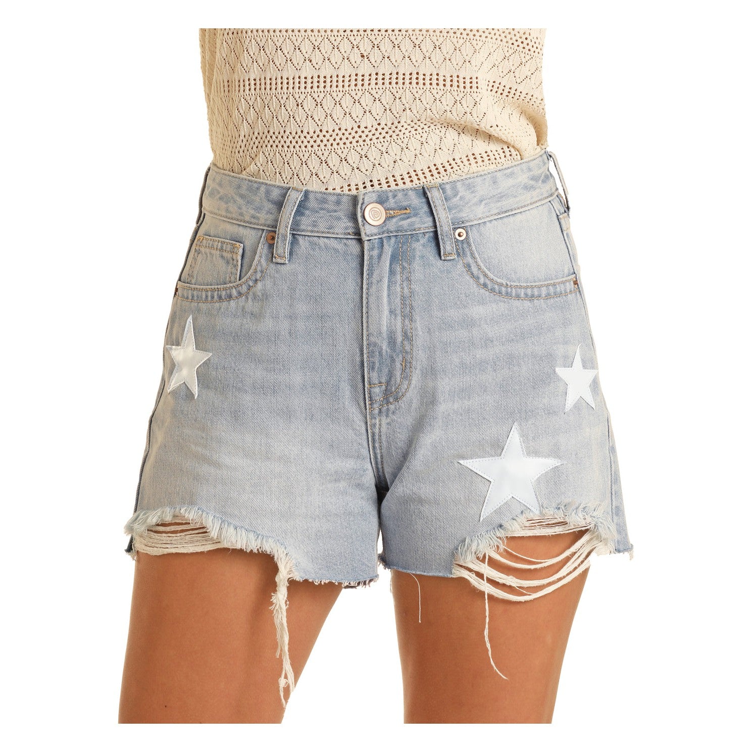 Rock & Roll Women's Leather Patch Star Shorts - Light Wash