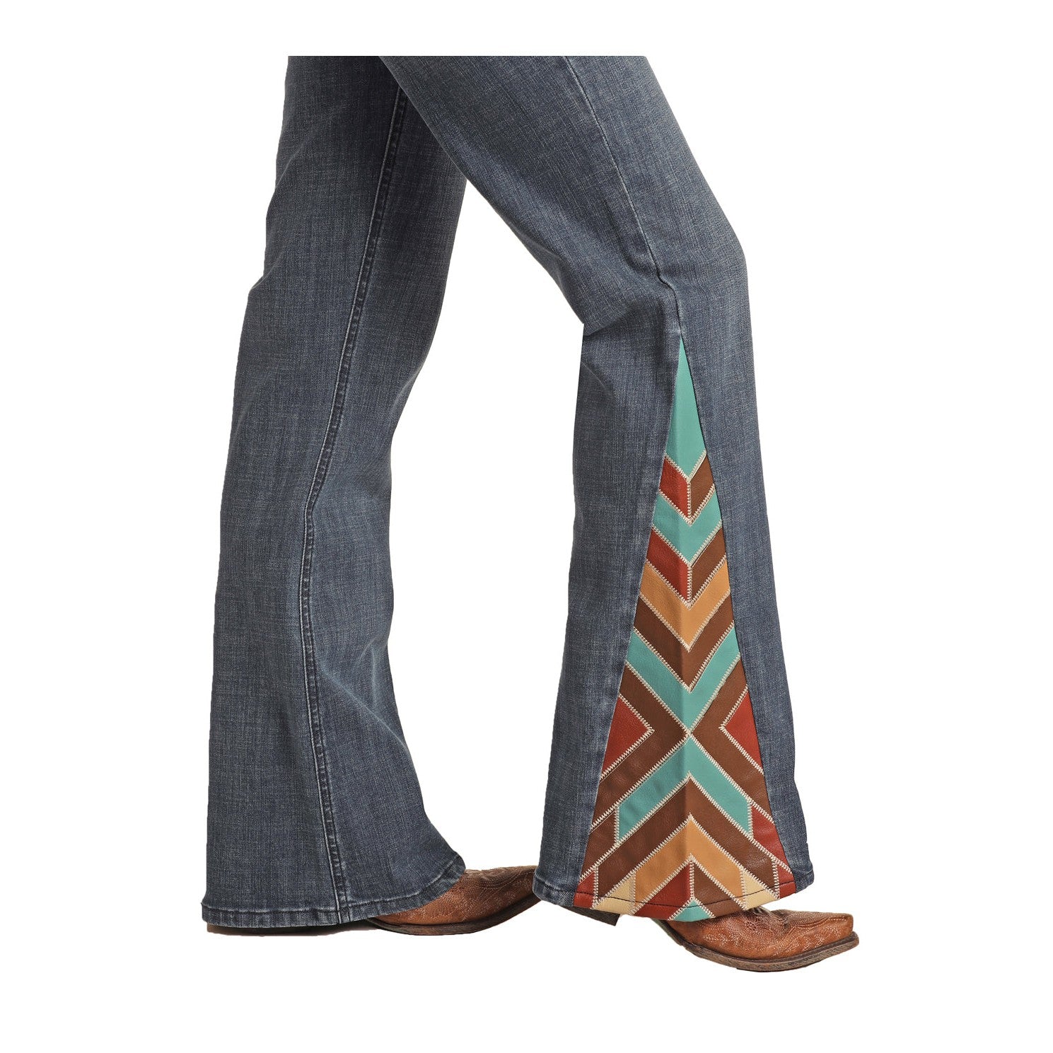 Rock & Roll Women's Patched Leather Insert Trouser Jeans - Medium Vintage