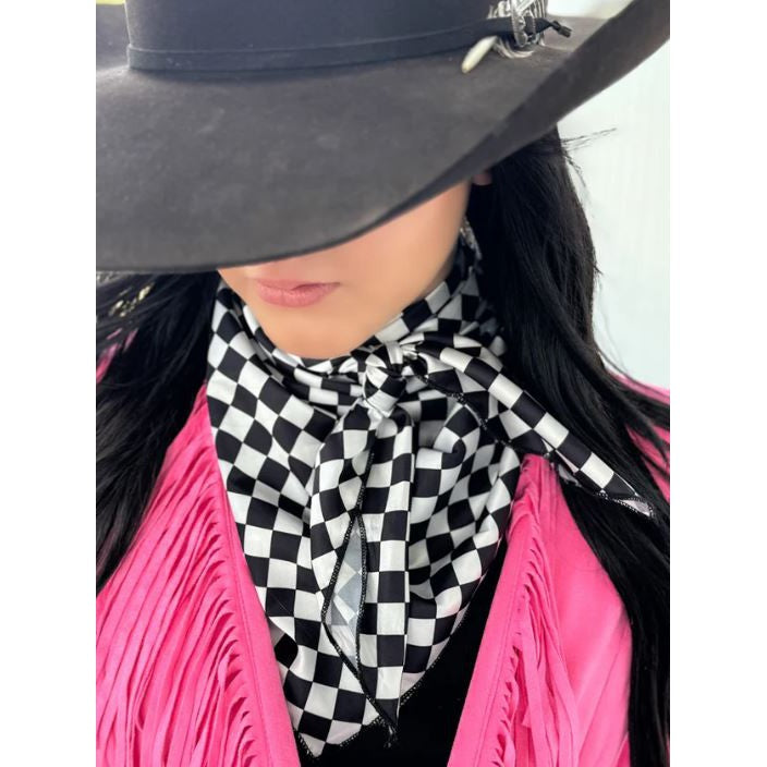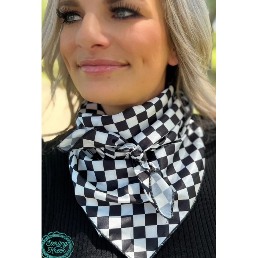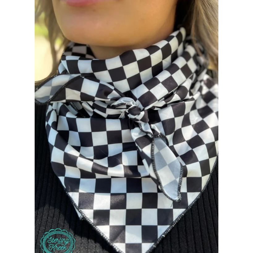 - Our Round The Track Wildrag adds a touch of personality to any outfit with its playful black and white checkered design