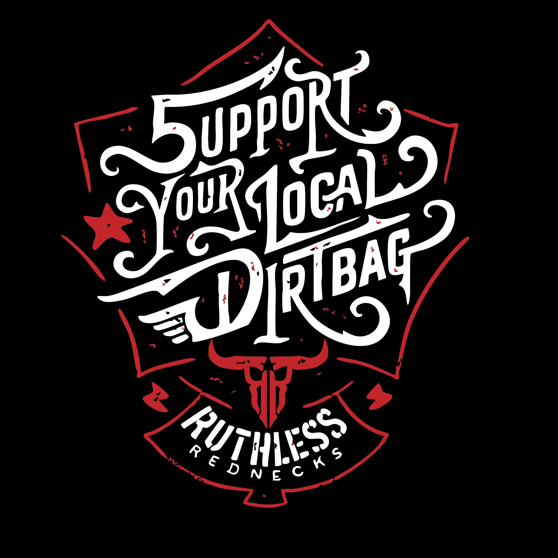 Ruthless Rednecks Support Your Local Dirtbag Short Sleeve Tee Shirt - Black