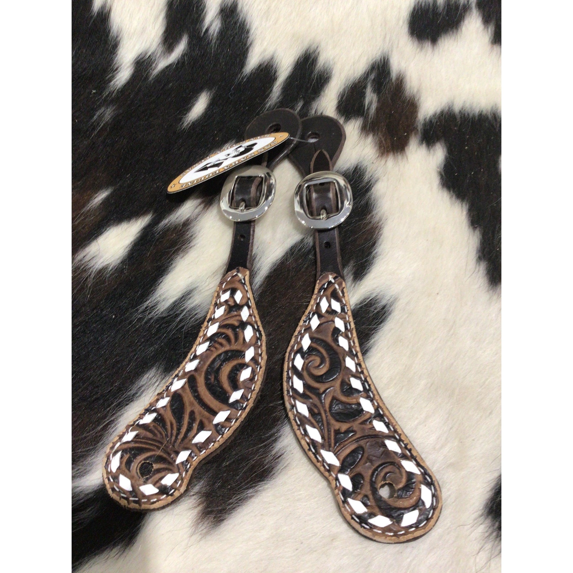 San Saba Shaped Spur Strap W/ Floral Print & Buckstitch
