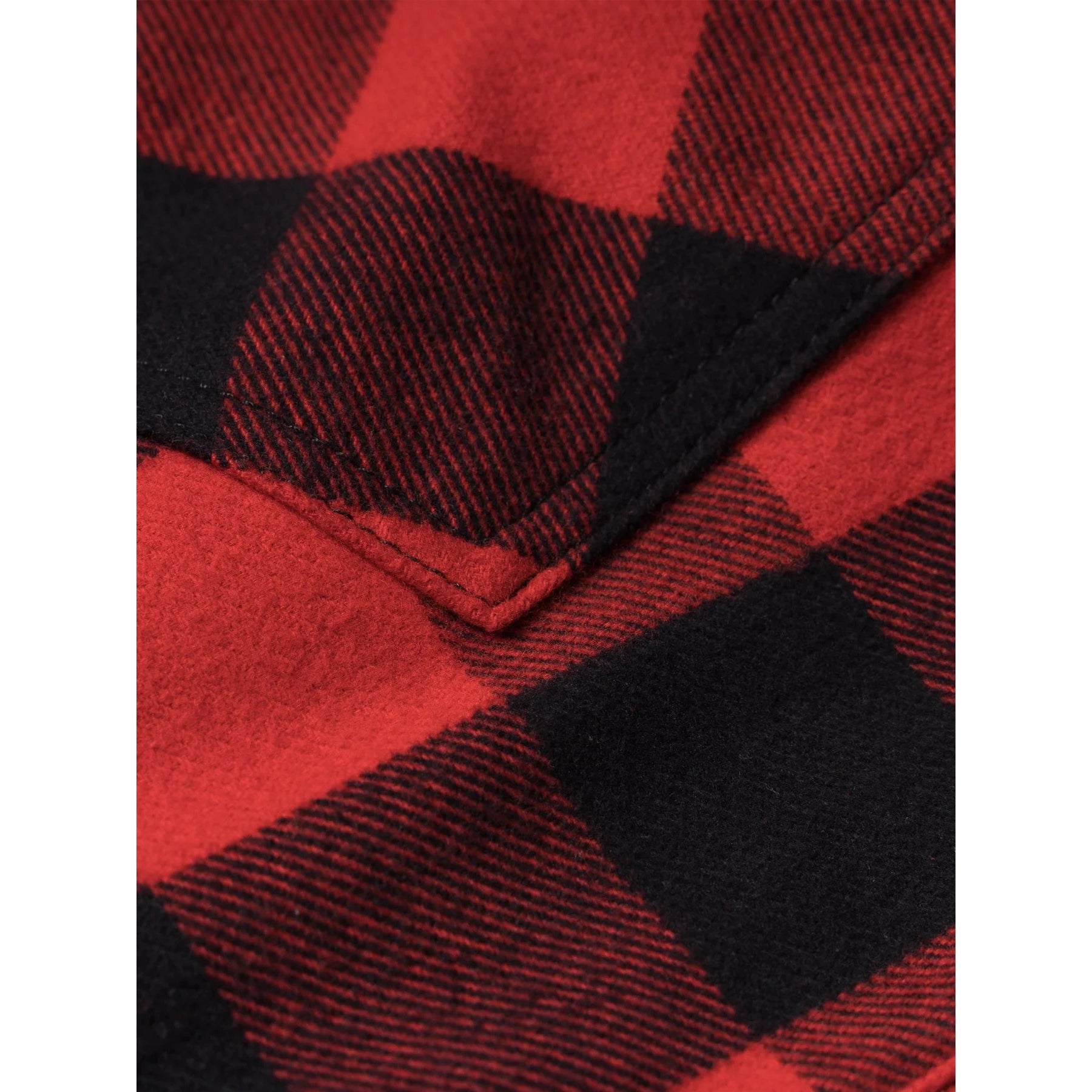 - A classic western buffalo check shirt jacket with a sherpa-lined body and quilted sleeve lining